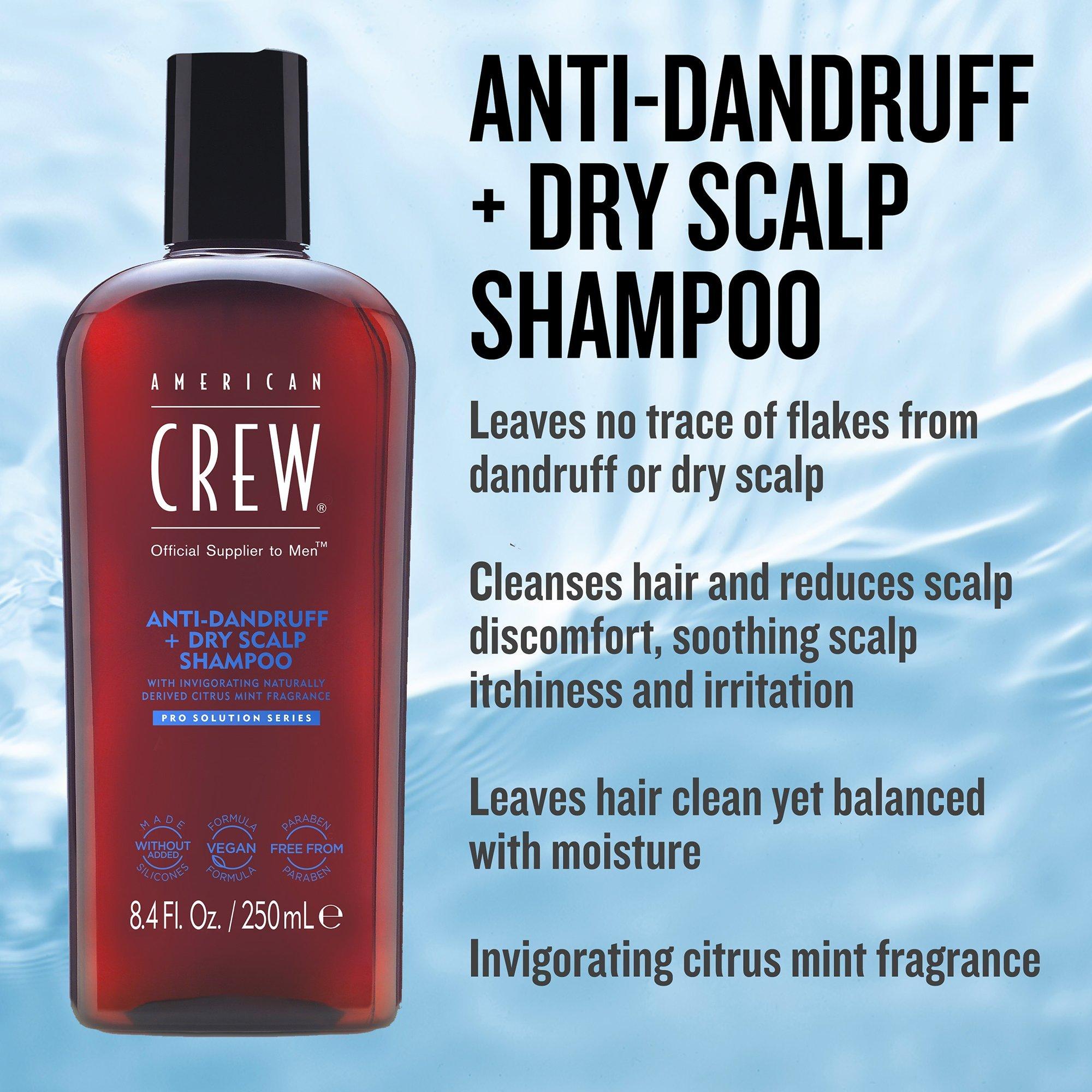 The American Crew Anti-Dandruff + Dry Scalp Shampoo has powerful cleansing ingredients to keep scalp clean, healthy and flake free by washing away oils.