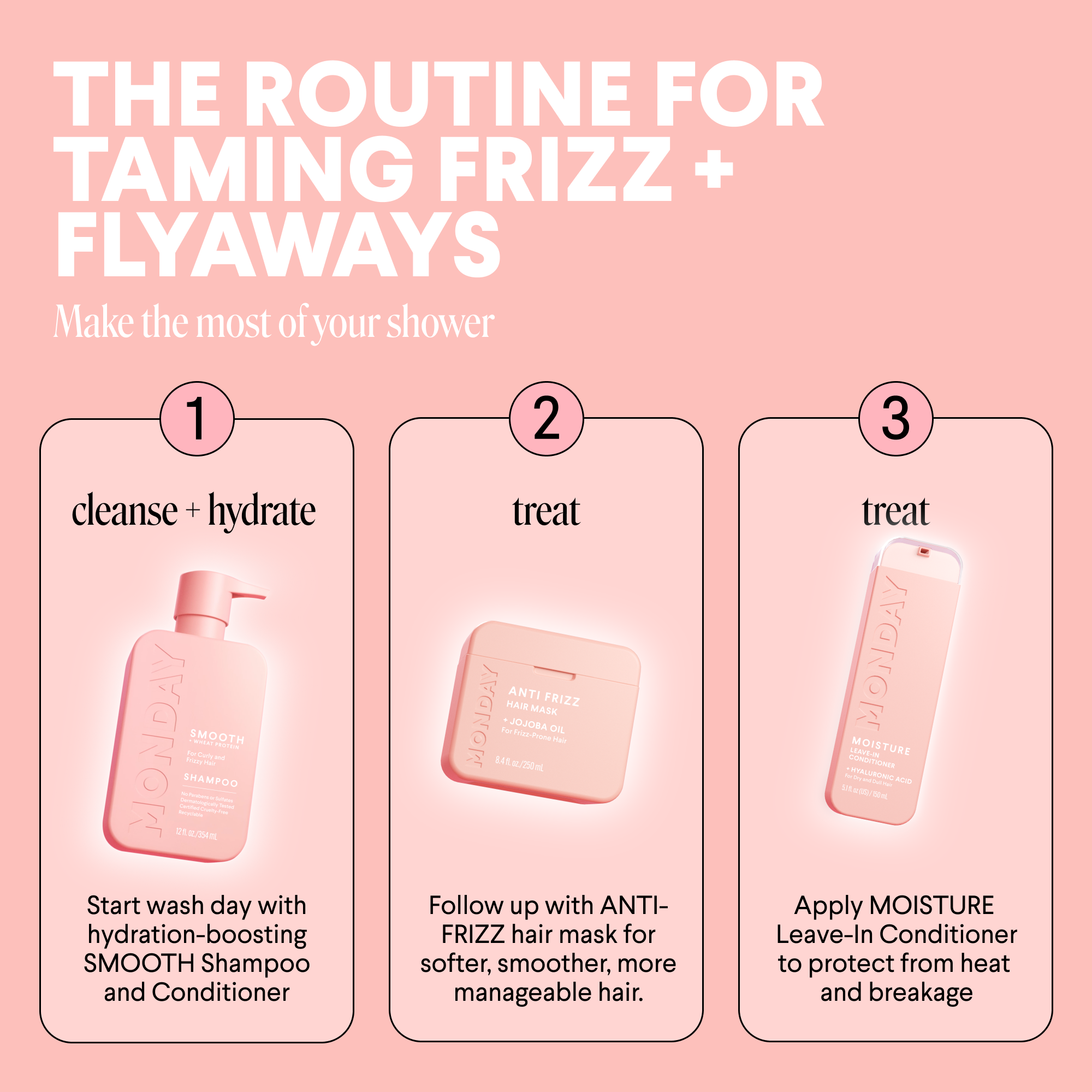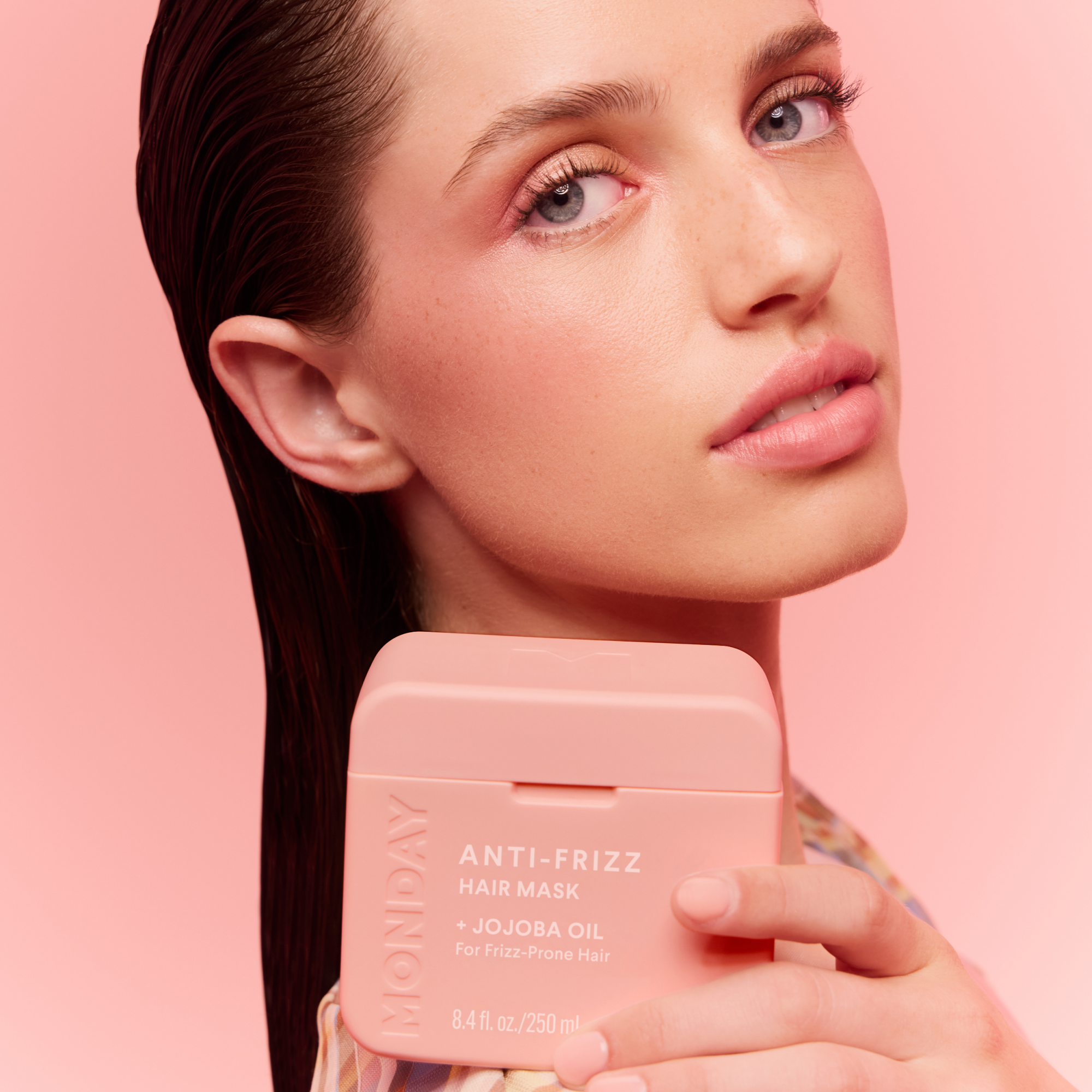 MONDAY Haircare ANTI-FRIZZ Hair Mask works to soften and smooth hair that's prone to frizz and flyaways, with protective Jojoba and Sweet Almond Oil. Hair is left feeling nourished and more manageable.