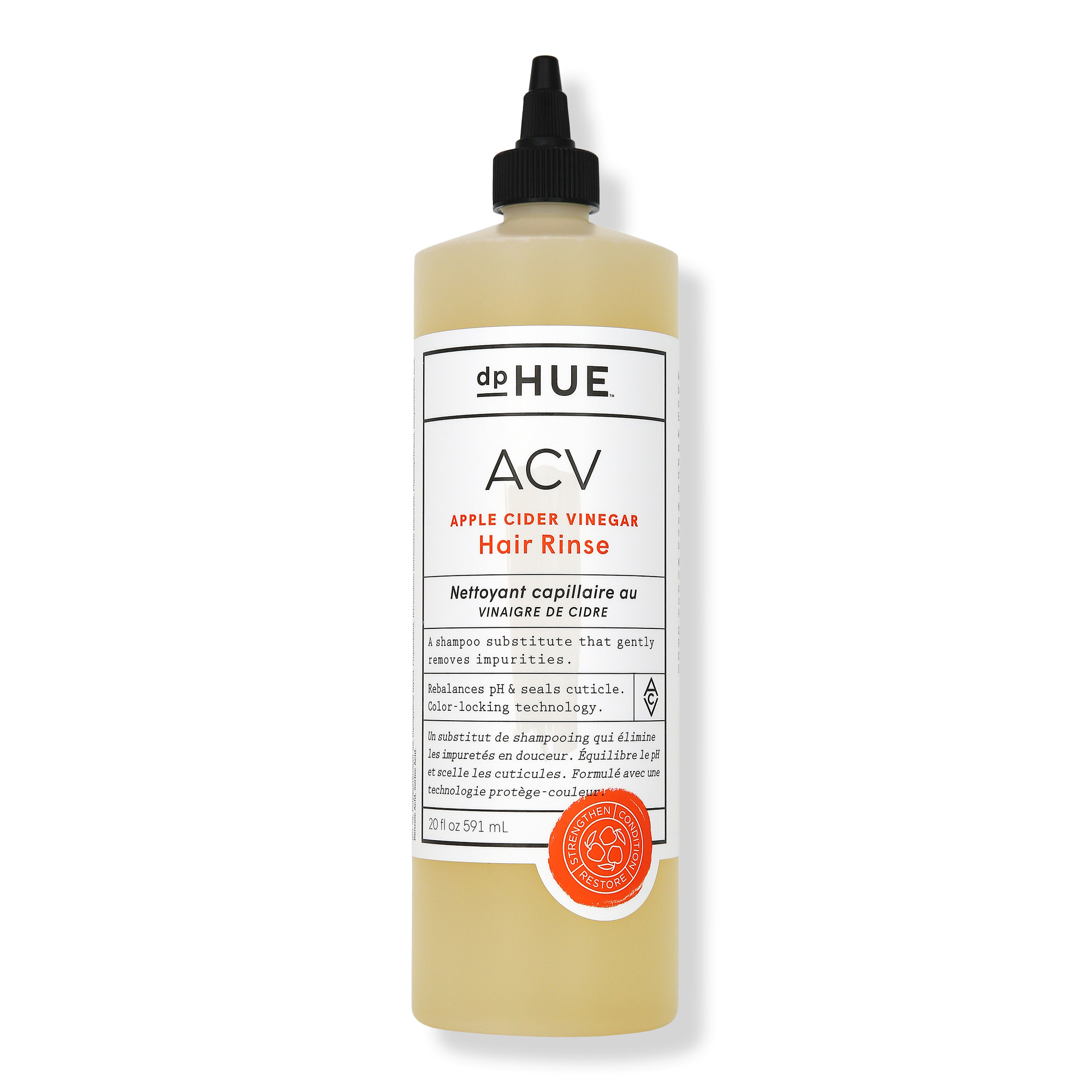 dpHUE Shampoo substitute that gently cleanses and removes impurities without stripping hair color and natural oils that are essential to scalp and hair health. Made with artisanal crafted Apple Cider Vinegar to help seal the cuticle and add shine. Keeps color safe. Scalp and hair pH are balanced.
