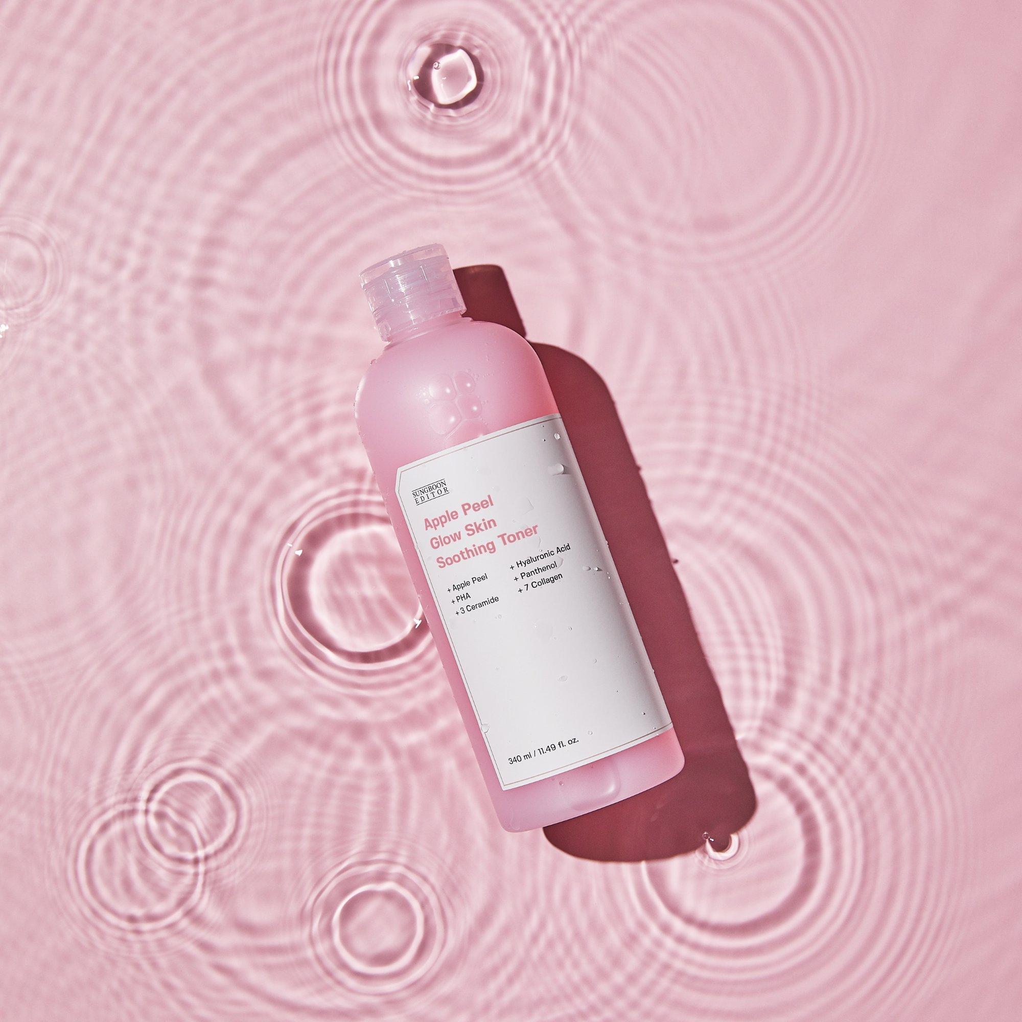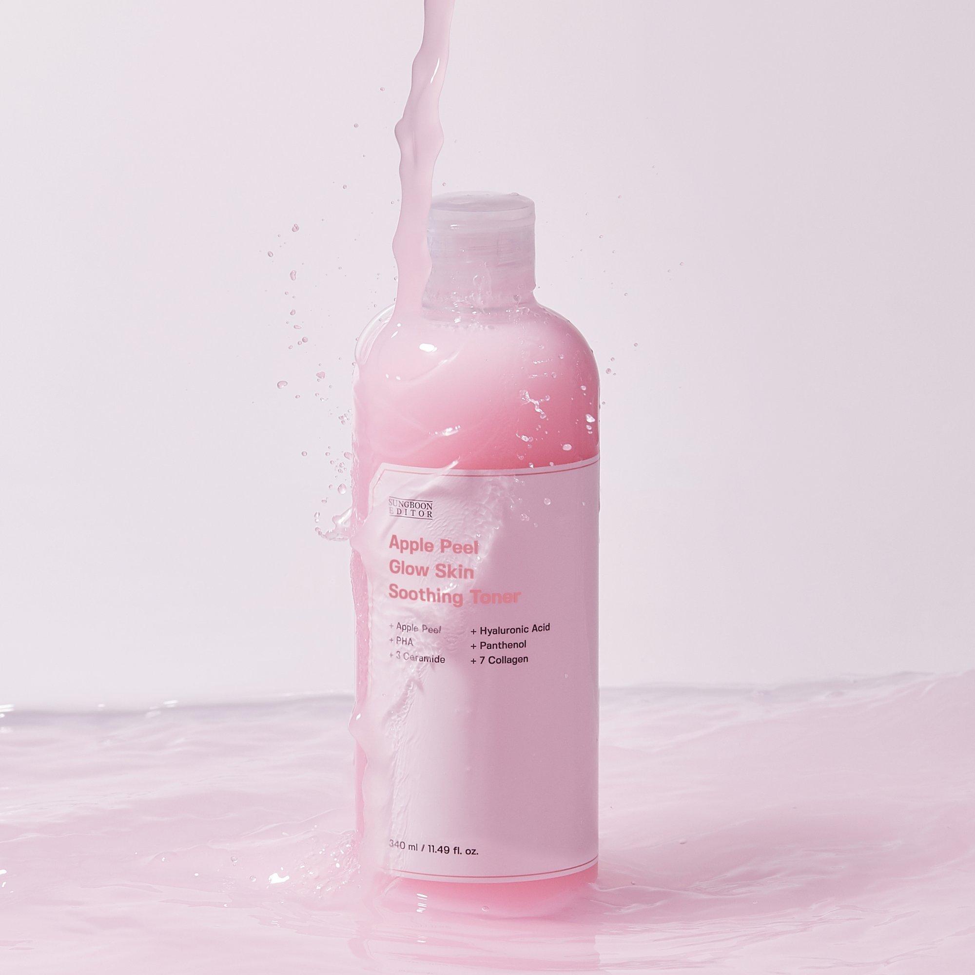 The Apple Peel Glow Skin Soothing Toner from Sungboon Editor improves skin texture and enhances glow by boosting light reflectivity for a smooth, radiant complexion.