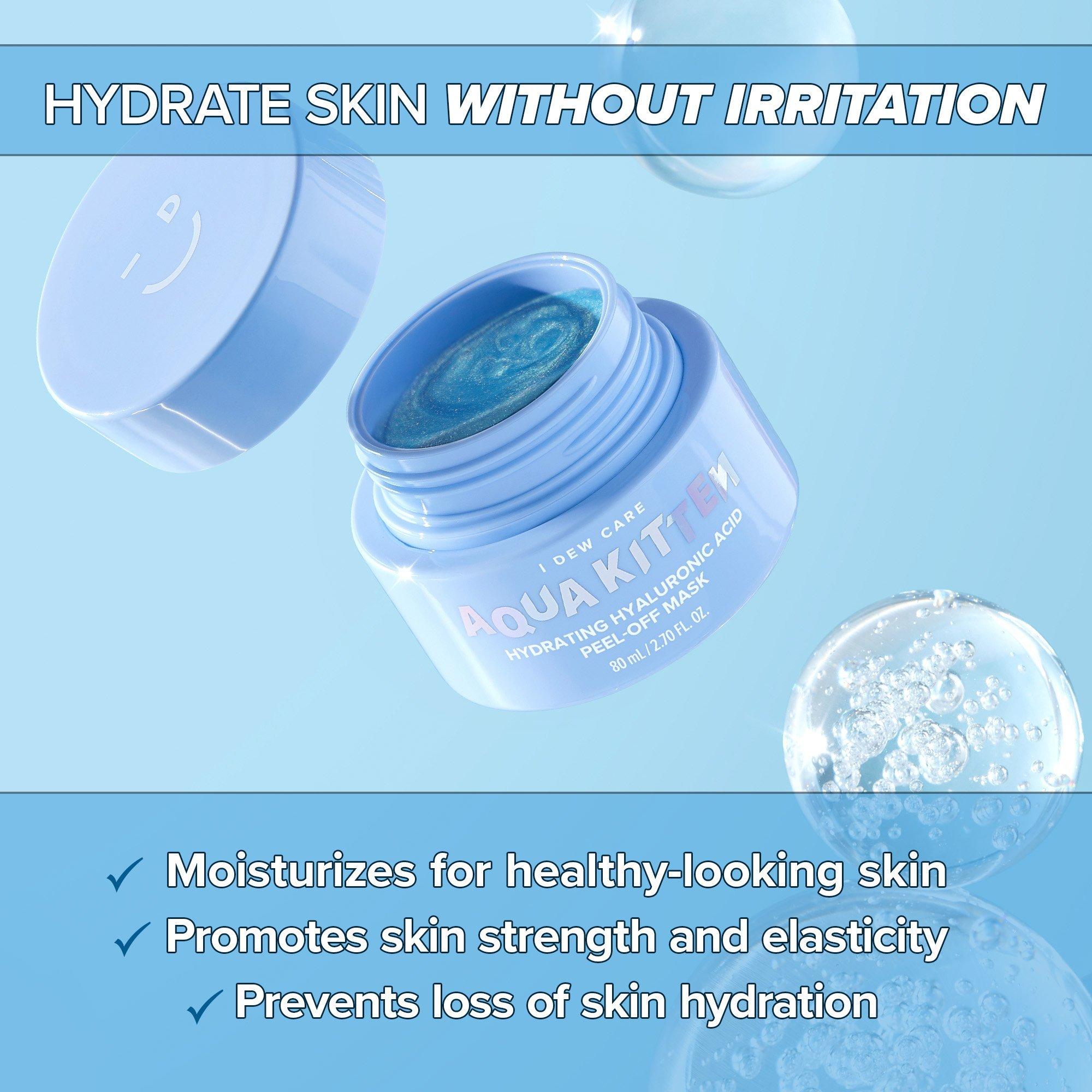 I Dew Care's Aqua Kitten Hydrating Hyaluronic Acid Peel-Off Mask helps reveal a glowing, healthy-looking complexion! Transform your skin with this luminous blue formula, crafted with hyaluronic acid, nutrient-rich Jeju sea water, and squalane. Say goodbye to dry skin and hello to a fresh, dewy glow!