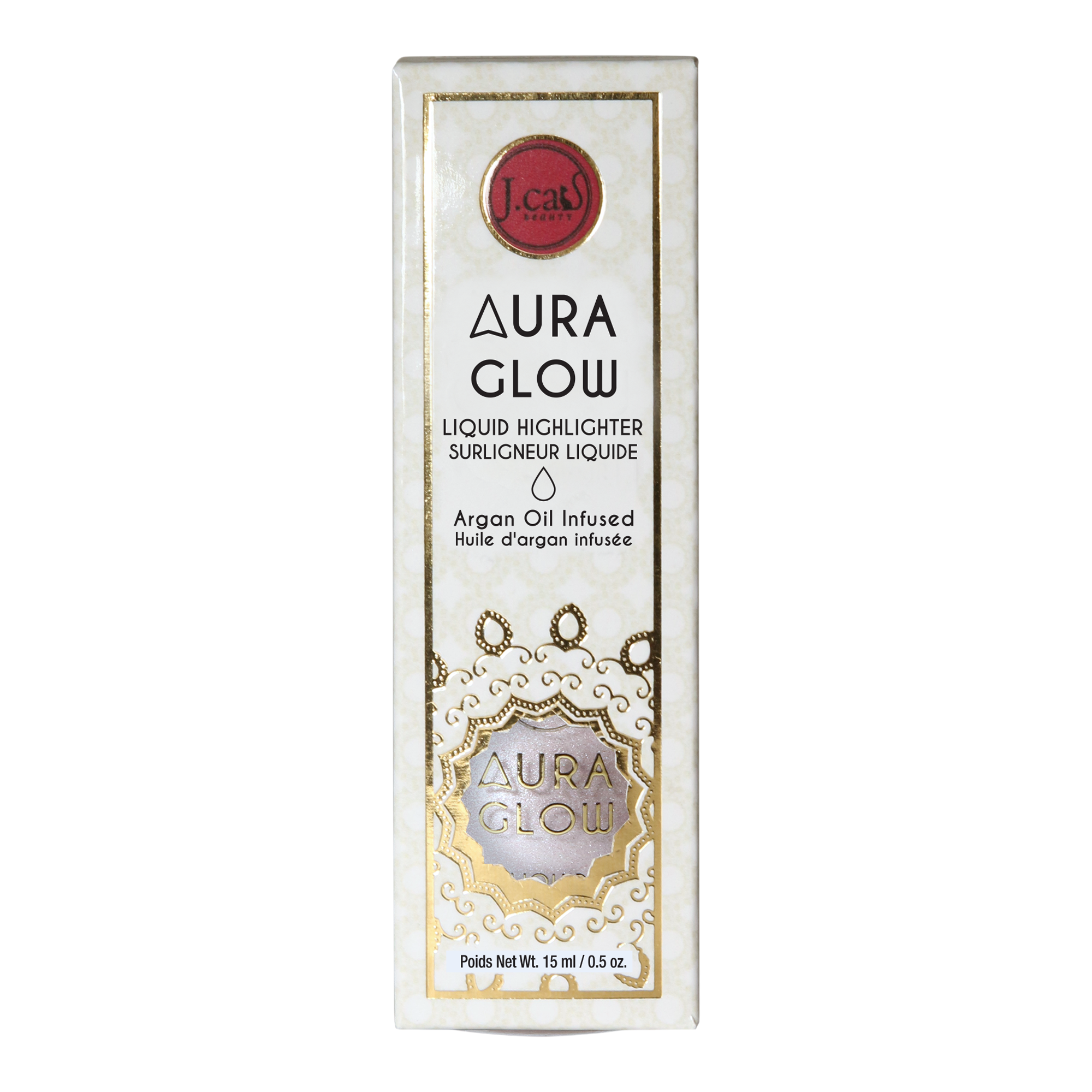 J.Cat Beauty's Aura Glow Liquid Highlighter delivers a customizable, dewy radiance that melts into the skin for a luminous, lit-from-within glow. Infused with nourishing argan oil, it hydrates as it highlights - leaving your skin looking fresh, radiant, and effortlessly glowing.