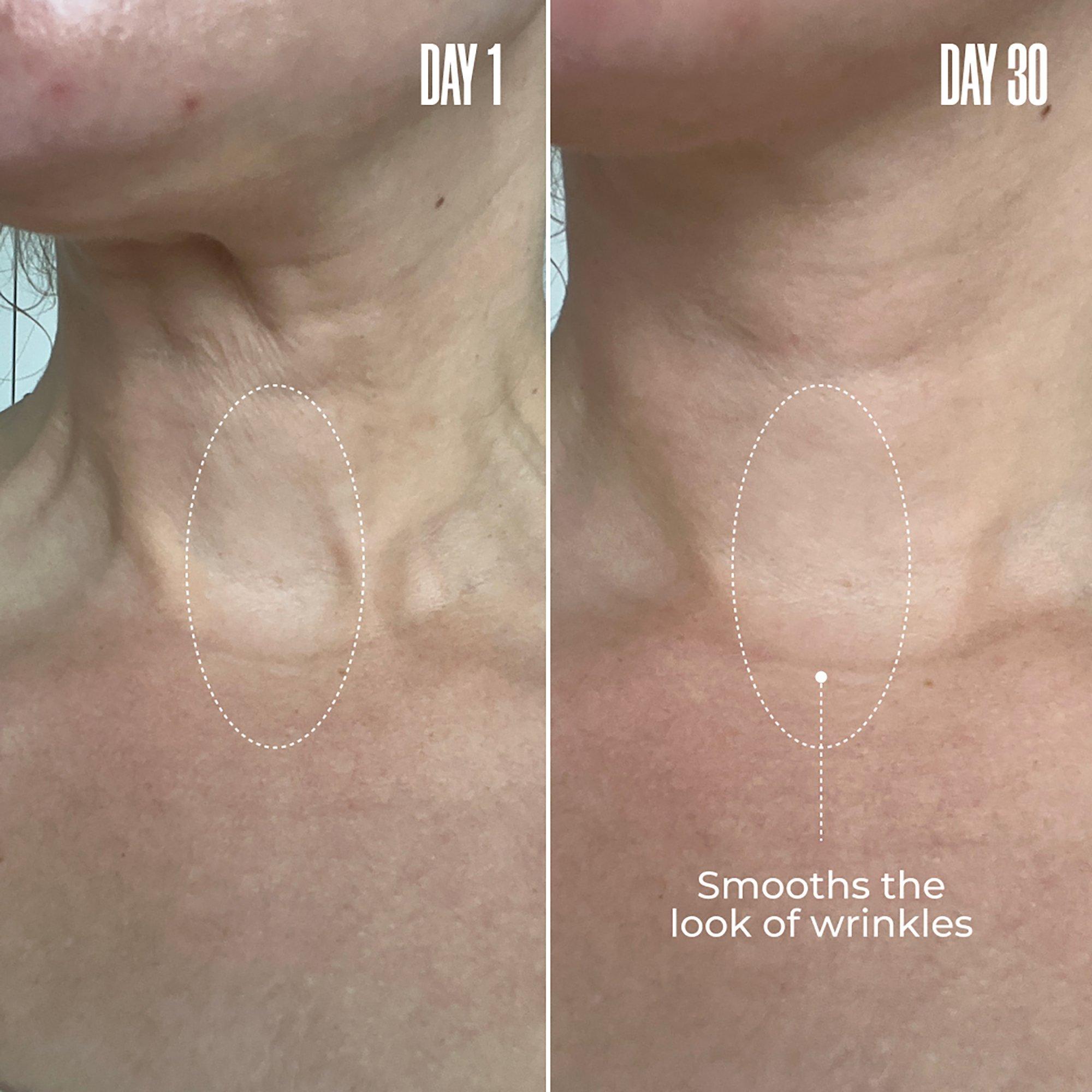 • Clinically proven to smooth the look of wrinkles on the neck.
