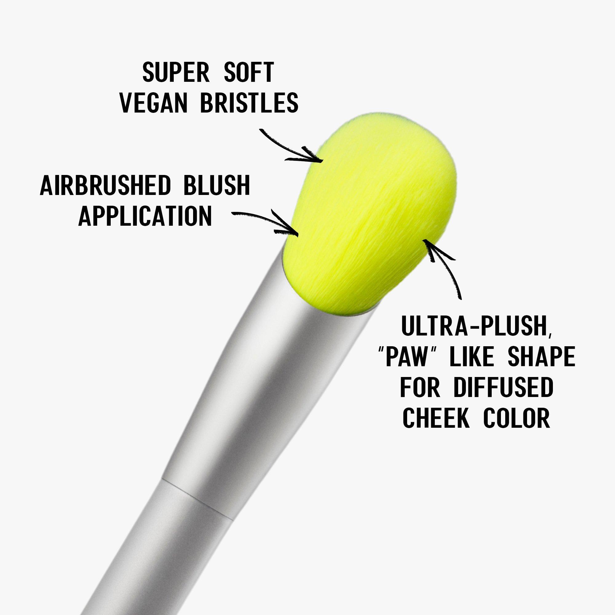 HALF MAGIC's Baby Paw Blush Brush is an ultra-plush brush designed to mimic the shape of a "baby paw" for the smoothest, most airbrushed color application.