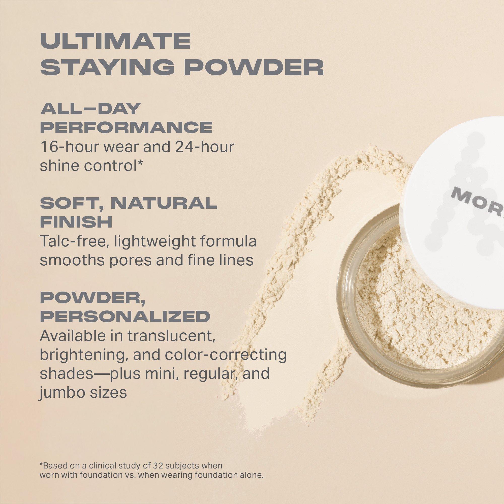 Set makeup for up to 16 hours of wear and minimize shine for up to 24 hours with Morphe's Bake & Set Setting Powder. This talc-free, lightweight, finely milled, silky loose powder sweeps on with an imperceptible, soft, natural finish, while smoothing pores and fine lines.
