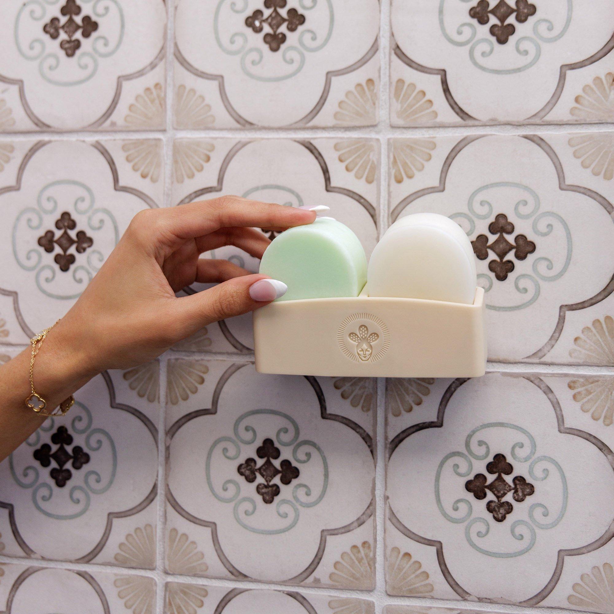 "In the shower, cup shampoo bar in palm of hand and smooth onto wet hair. A little goes a long way. Set bar aside and use fingertips to lather while massaging the scalp. Shampoo hair as usual and rinse with water. Continue ritual with conditioner bar. Keep bar out of water between uses to extend use. In the shower, cup conditioner bar in palm of hand and smooth directly onto wet hair, coating strands and tips. Use hands and fingertips to work through hair. Rinse with water. Keep bar out of water between uses to extend use.