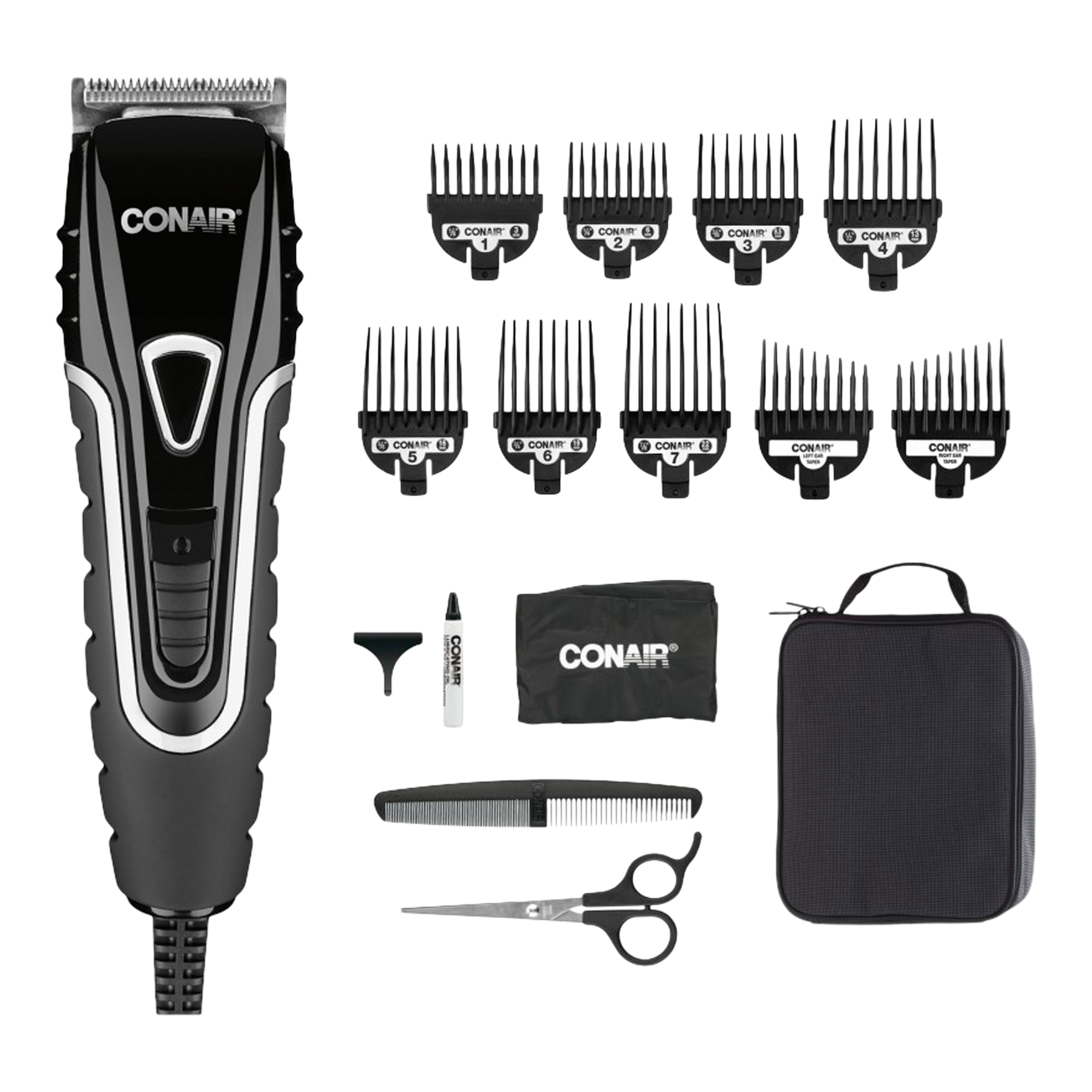 The Conair Barbershop Series Ultimate-Grip Clipper features a No-Slip Grip for clean and easy cuts and trims. No slips, no nips, just great clipping action. The kit comes with all the tools needed for professional quality barbering at home.
