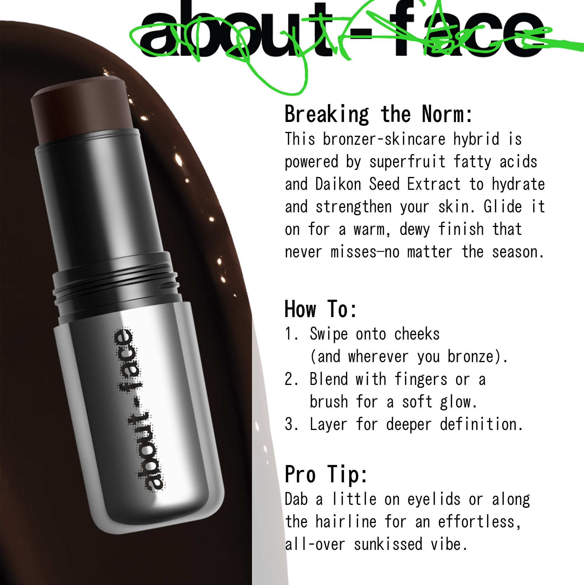 THIS IS: An ultra-creamy, blendable bronzing stick that glides on the skin for buildable coverage + easy on-the-go application.