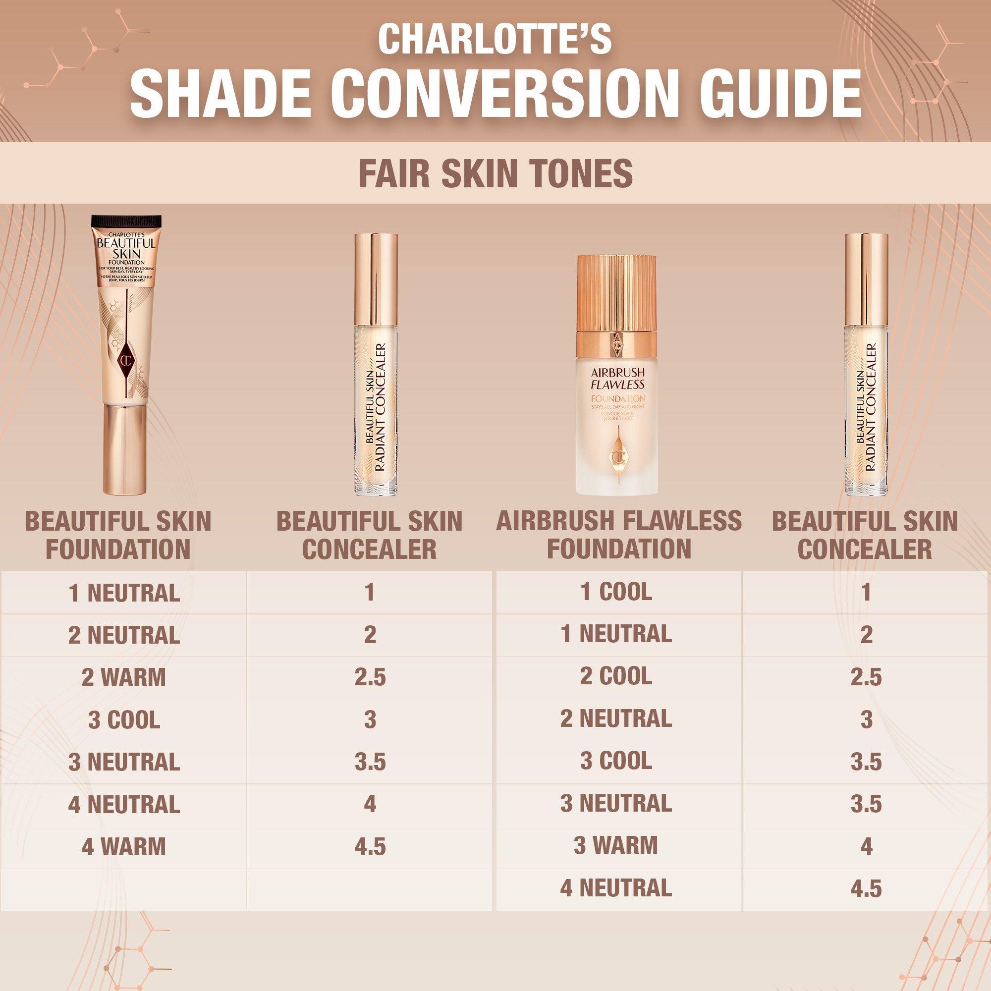 Charlotte Tilbury's Beautiful Skin Medium to Full Coverage Radiant Concealer with Hyaluronic Acid is a creamy, skin-like, medium-to-full-coverage concealer that visibly conceals, brightens, and lifts eyes and face, available in 30 waterproof shades with up to 16 hours of wear.
