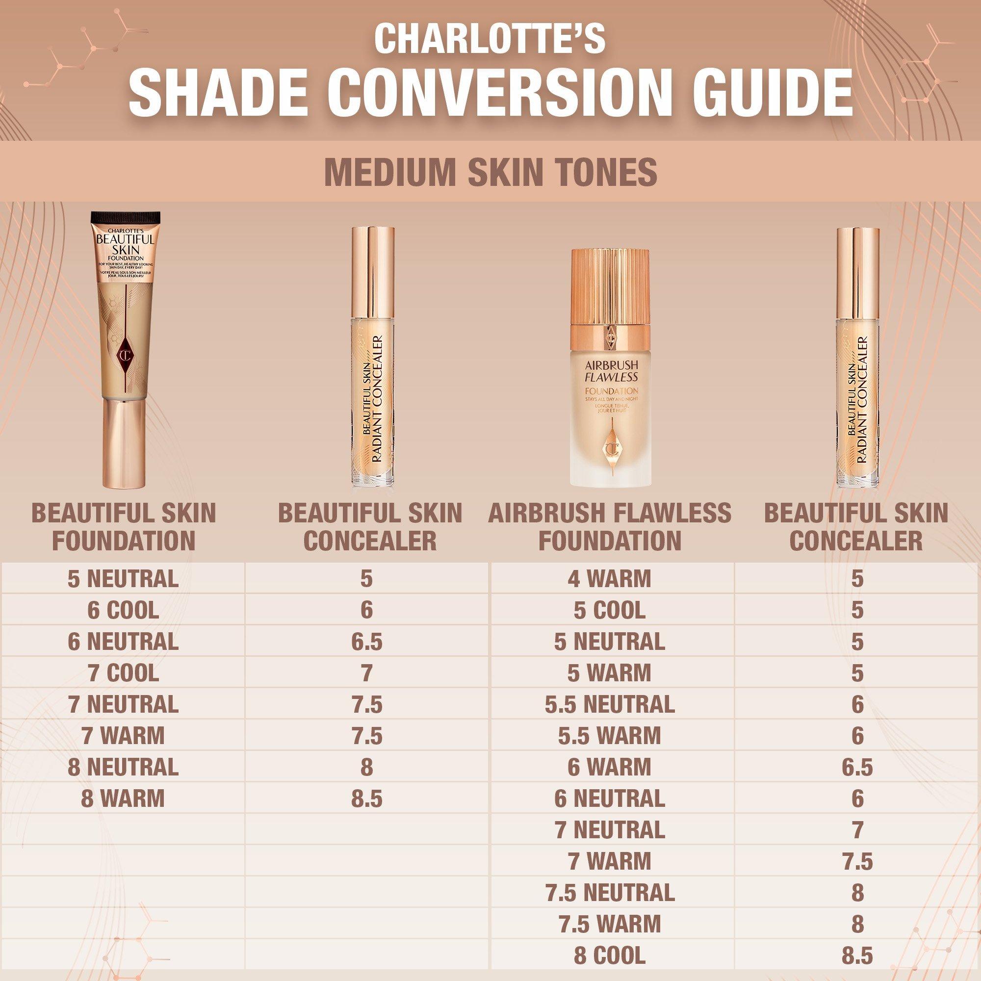 Charlotte Tilbury's Beautiful Skin Medium to Full Coverage Radiant Concealer with Hyaluronic Acid is a creamy, skin-like, medium-to-full-coverage concealer that visibly conceals, brightens, and lifts eyes and face, available in 30 waterproof shades with up to 16 hours of wear.