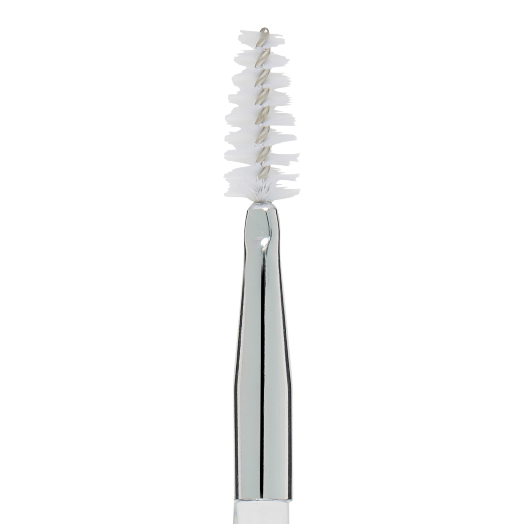 Use the wand end to brush hair into shape. Following the natural arch, fill in any sparse areas of the brow with the angled brush by using short feathery strokes that mimic hair to help shape and define.