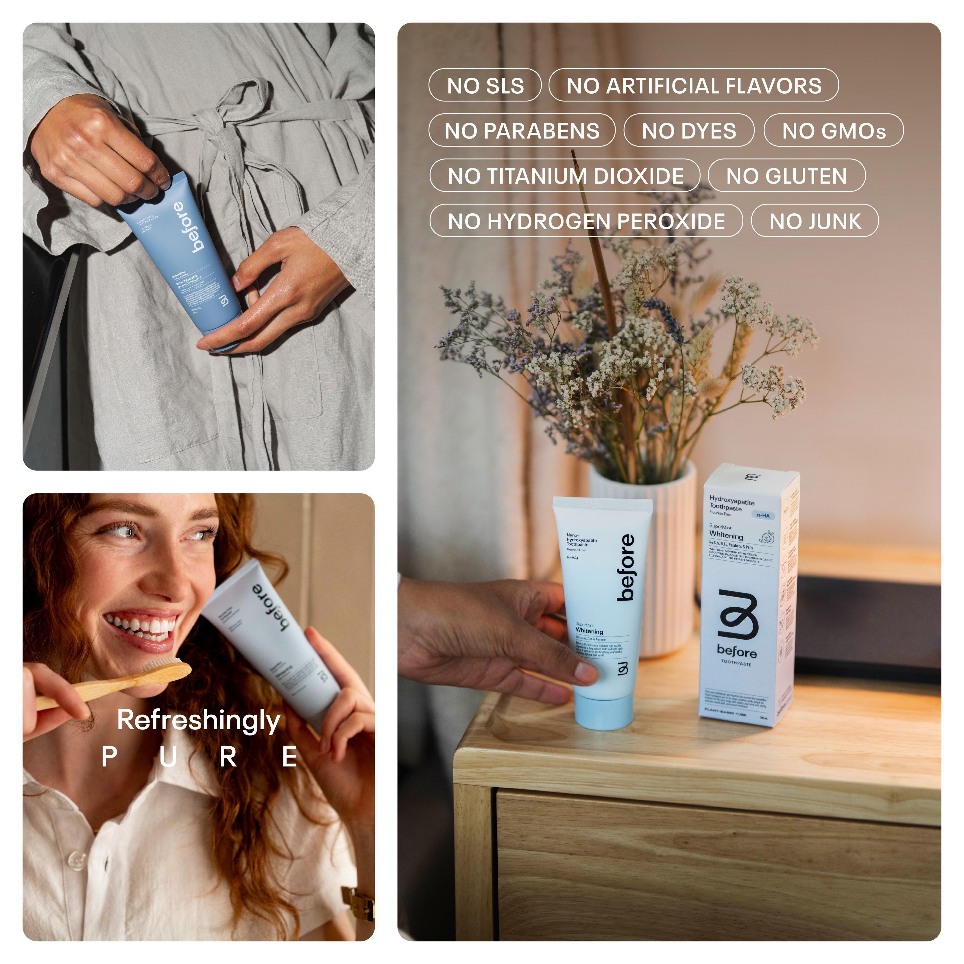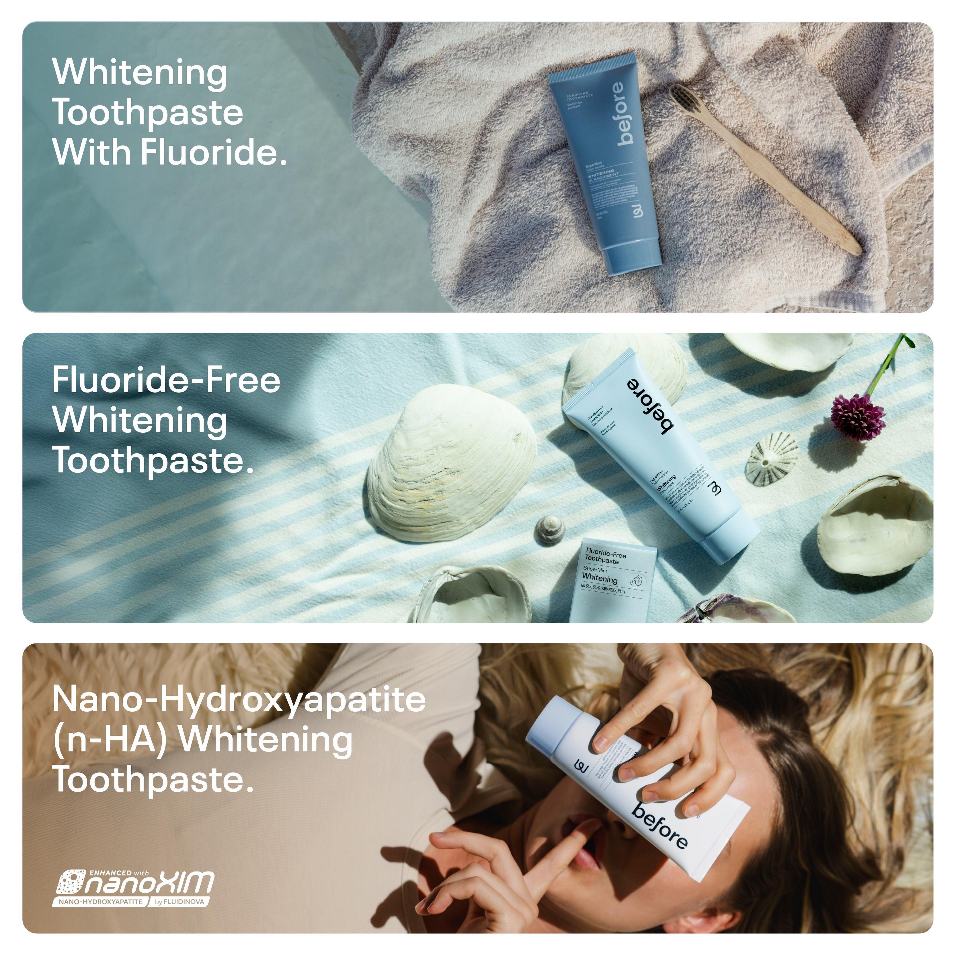 Three ways to brush clean. Anti-Cavity, Fluoride-Free, and n-HA Whitening—each with our signature SuperMint flavor.