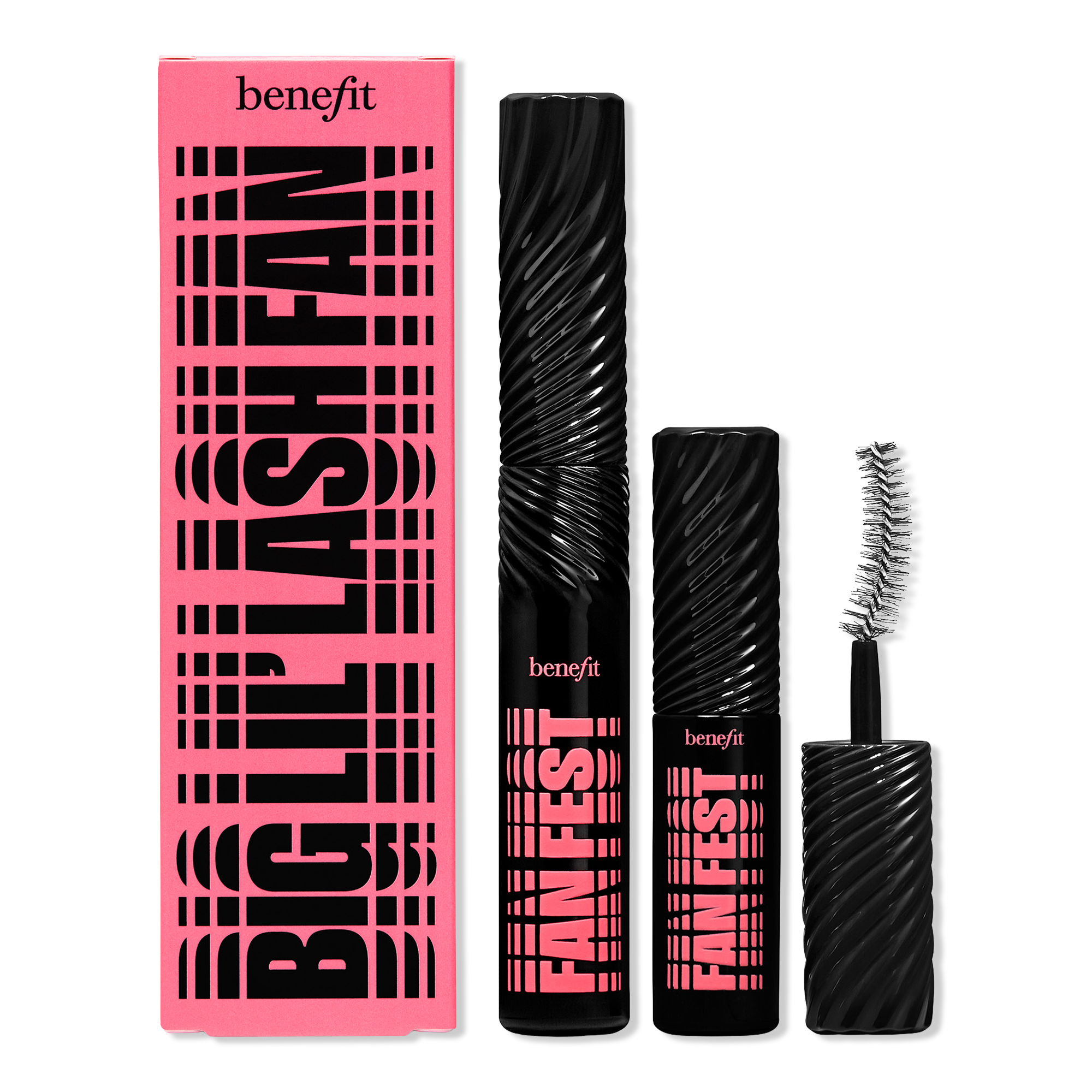 Fan out lashes side-to-side, amplify volume, AND multiply the look of lashes with a big and lil' duo of Benefit's Fan Fest fanning & volumizing mascara. Plus, you'll get a 24-hour* full-fan effect thanks to the longwearing formula and the custom-engineered Full-Flex Fiber Brush.