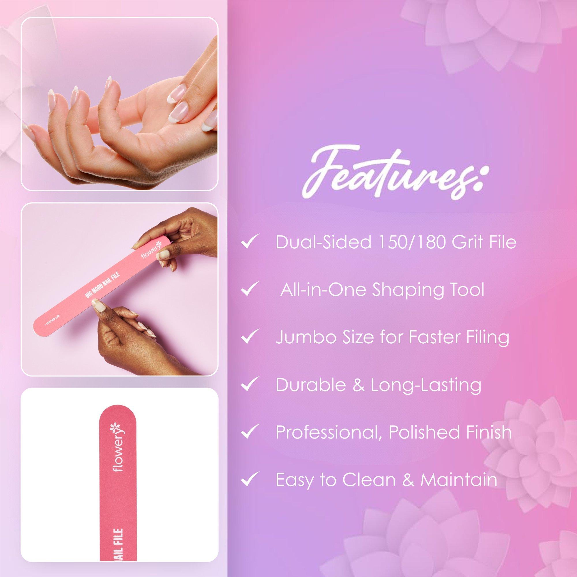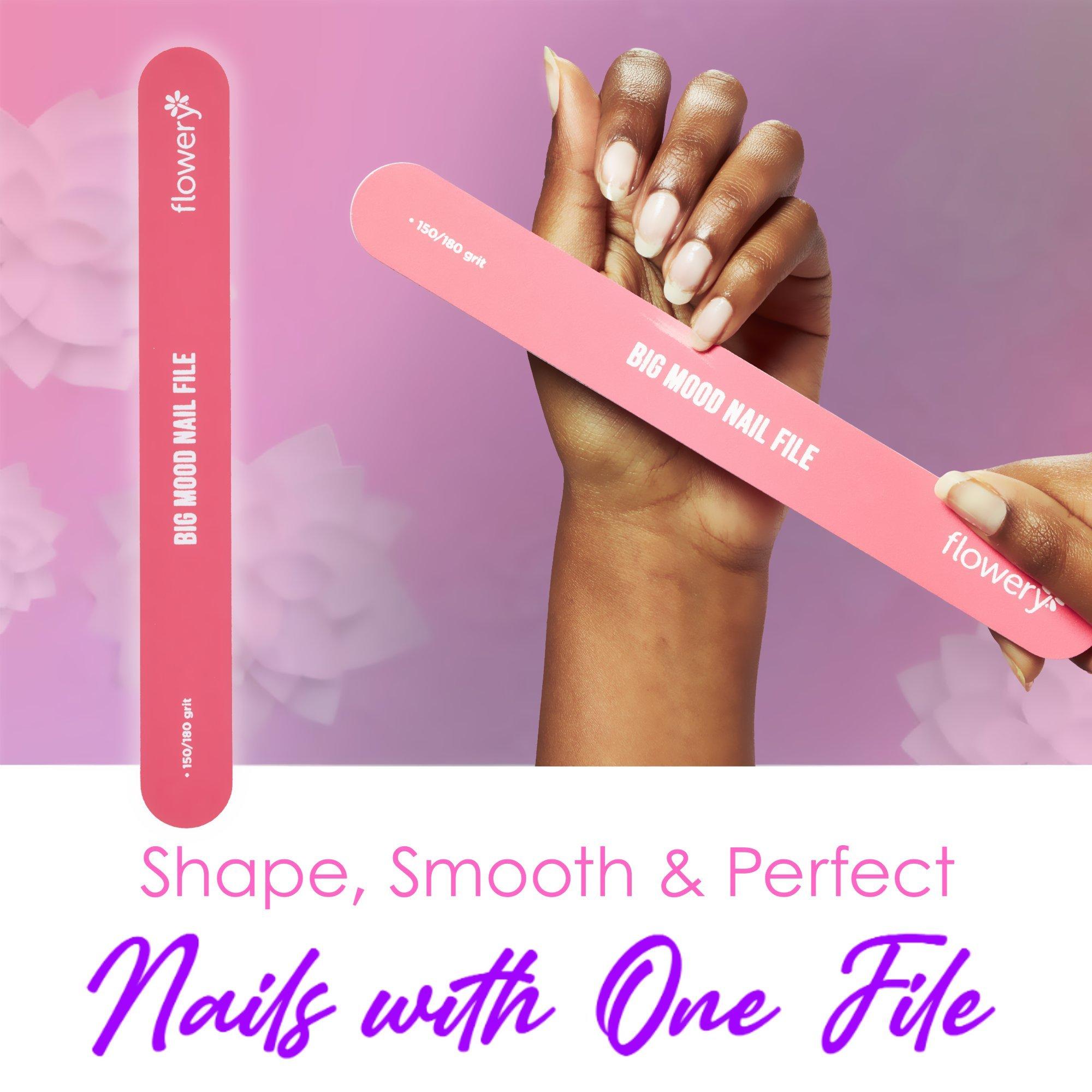 Flowery Big Mood Jumbo Nail File 150/180 Grit makes at-home manicures easy, shaping and smoothing nails for polished results.
