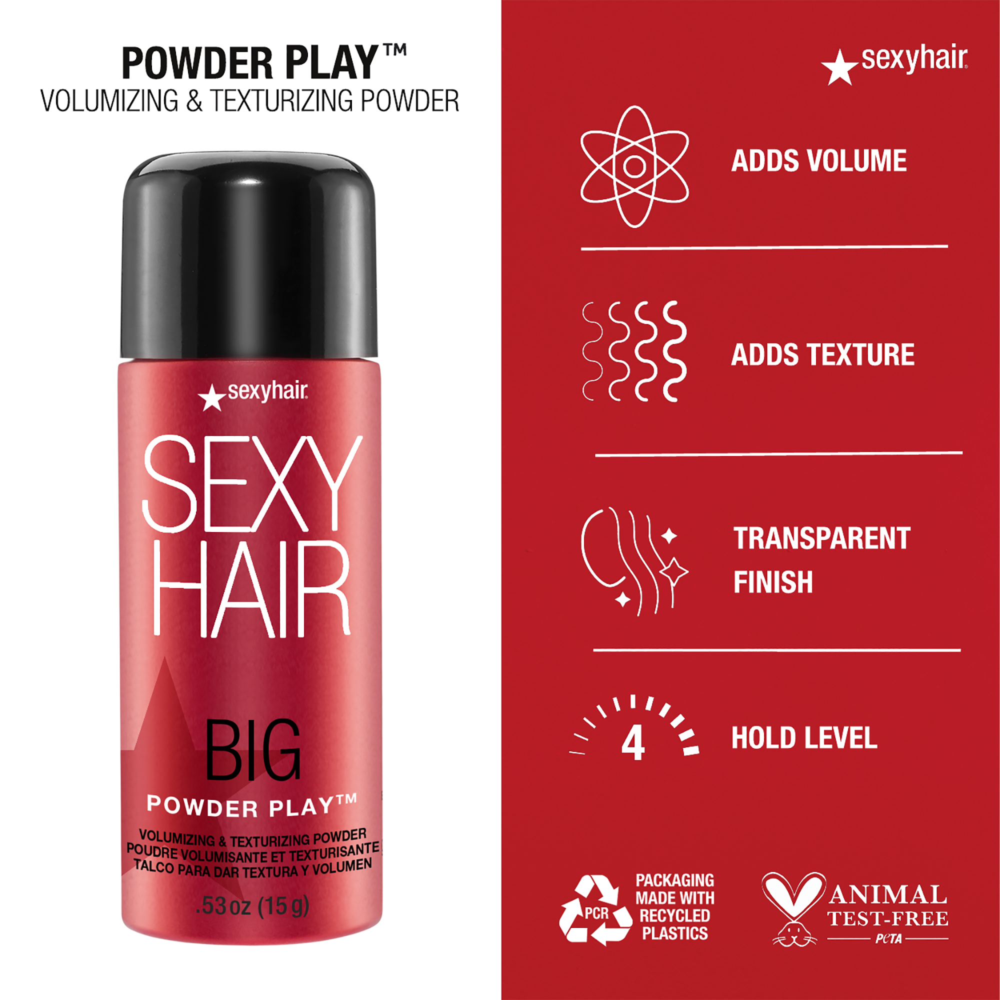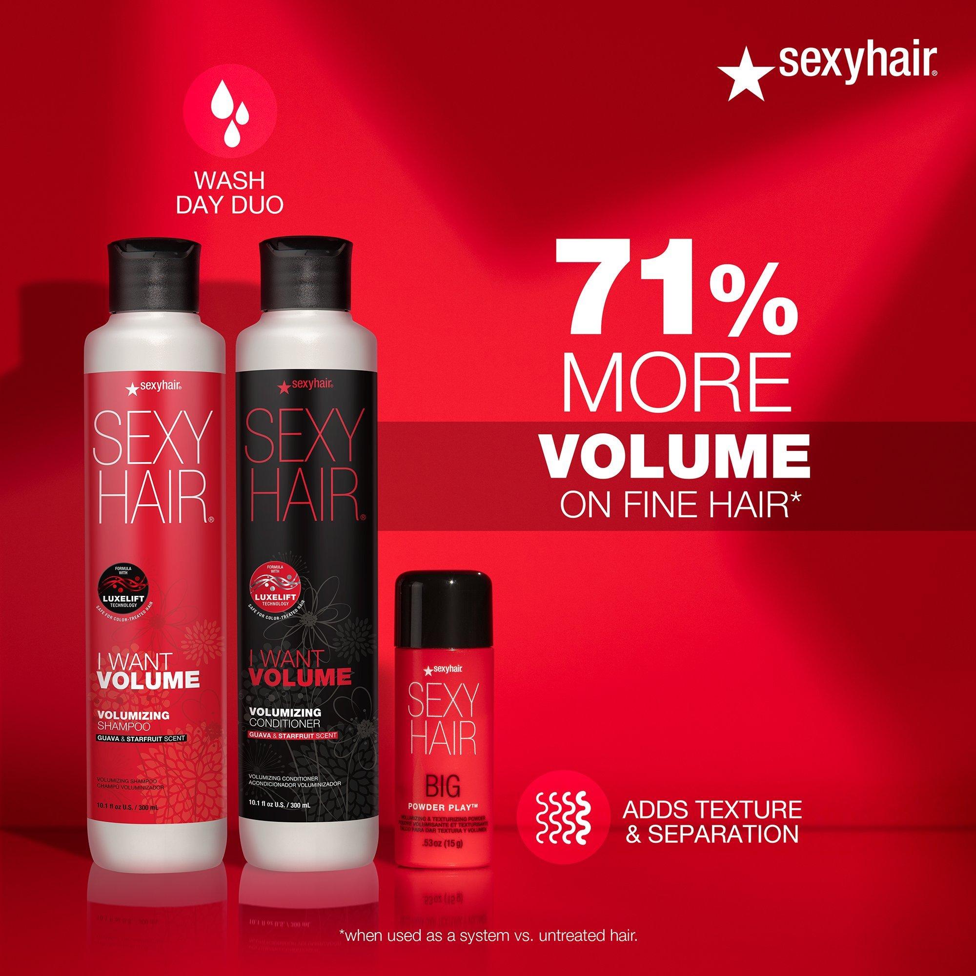 Big SexyHair Powder Play Volumizing & Texturizing Powder adds instant volume and texture to medium and thick hair. This weightless fragrance-free formula can be used even on dark hair colors.