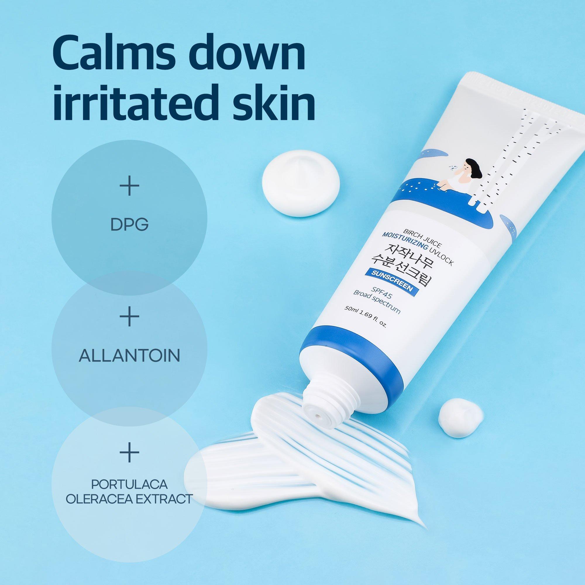 ROUND LAB Birch Juice Moisturizing UVLOCK SPF 45 is Korea’s No.1 sunscreen, designed to meet US FDA standards! Made with the sap of Inje’s silver birch trees, full of cool, refreshing energy, and hyaluronic acid, it deeply hydrates and leaves skin dewy and healthy.