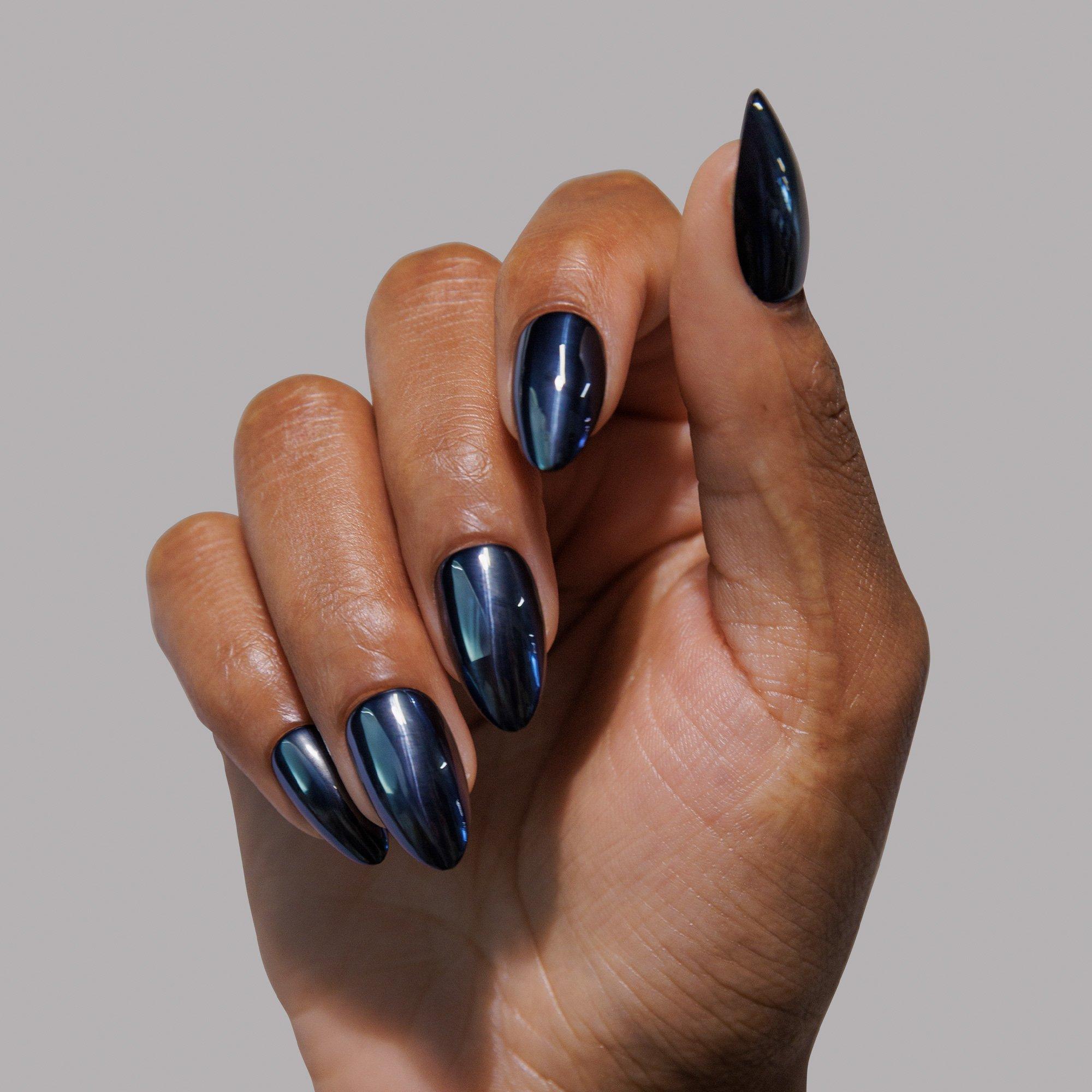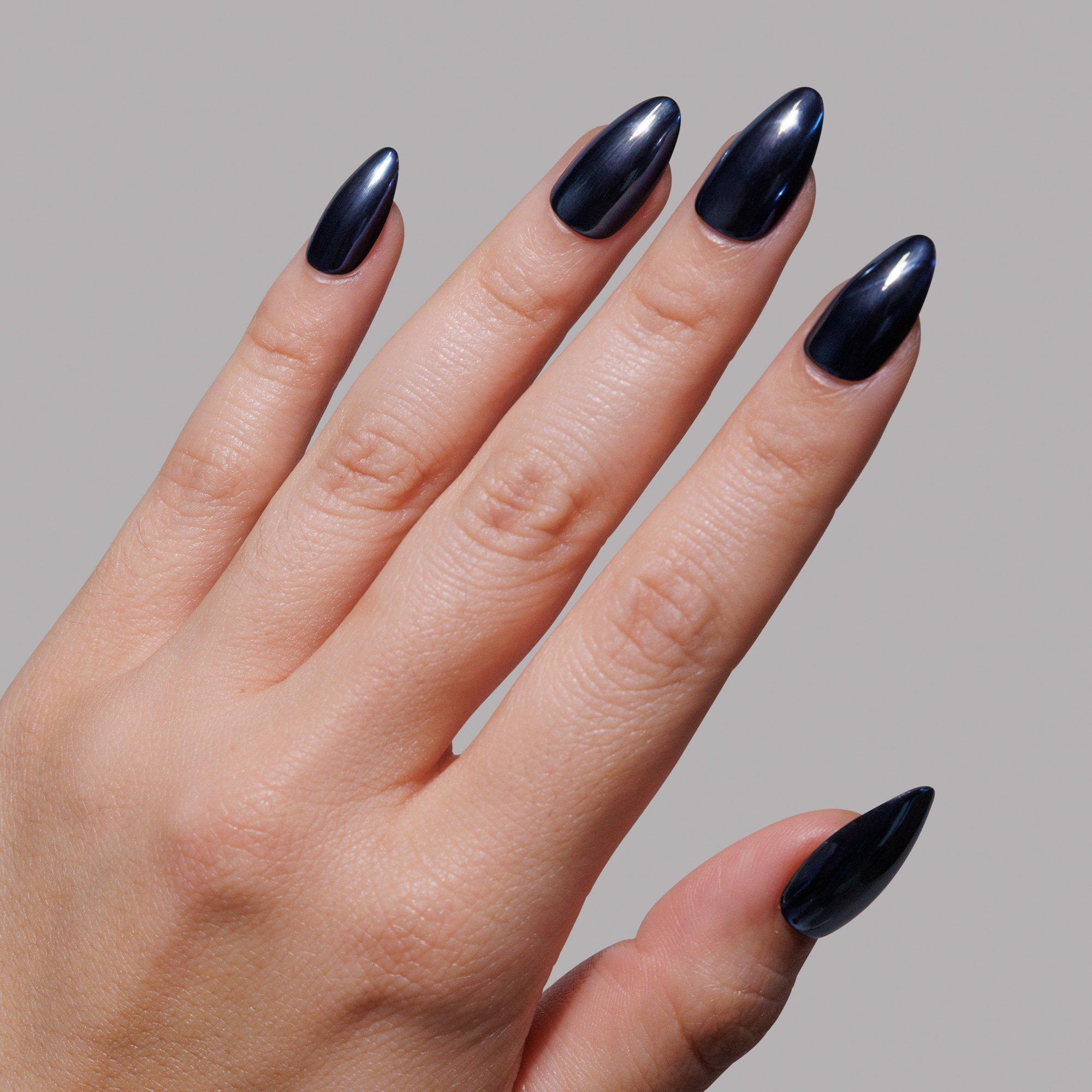 Glossy black. Pure torque. Glamnetic Black Metal Press-On Nails fuse rebellion and refinement with a slick, dark chrome finish that feels straight off the showroom floor. Designed in the top-selling Short Almond shape, it’s cool without trying — the ultimate statement in quiet power.