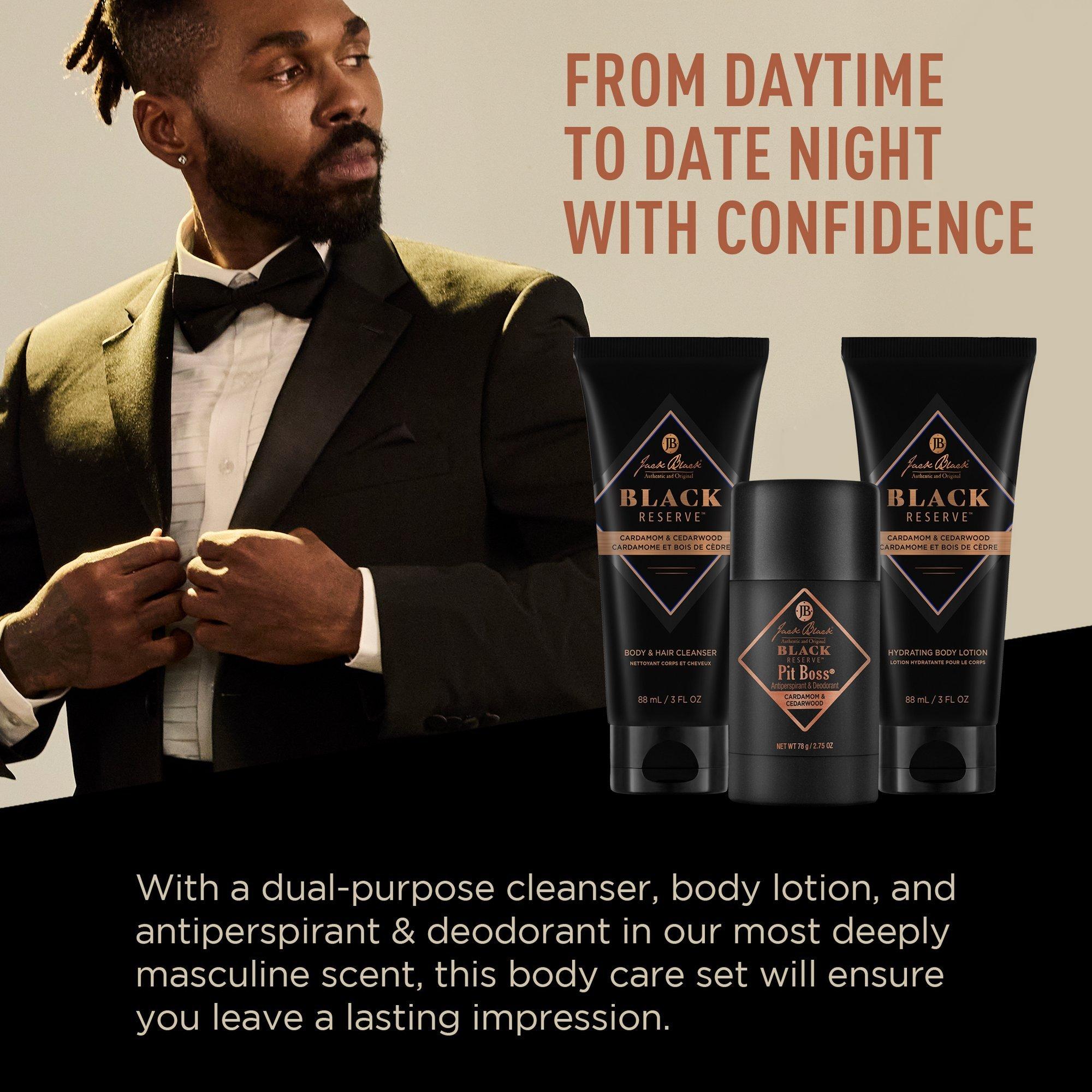The Jack Black Black Reserve Body Collection Set is expertly curated with all you need to take you from daytime to date night with confidence.