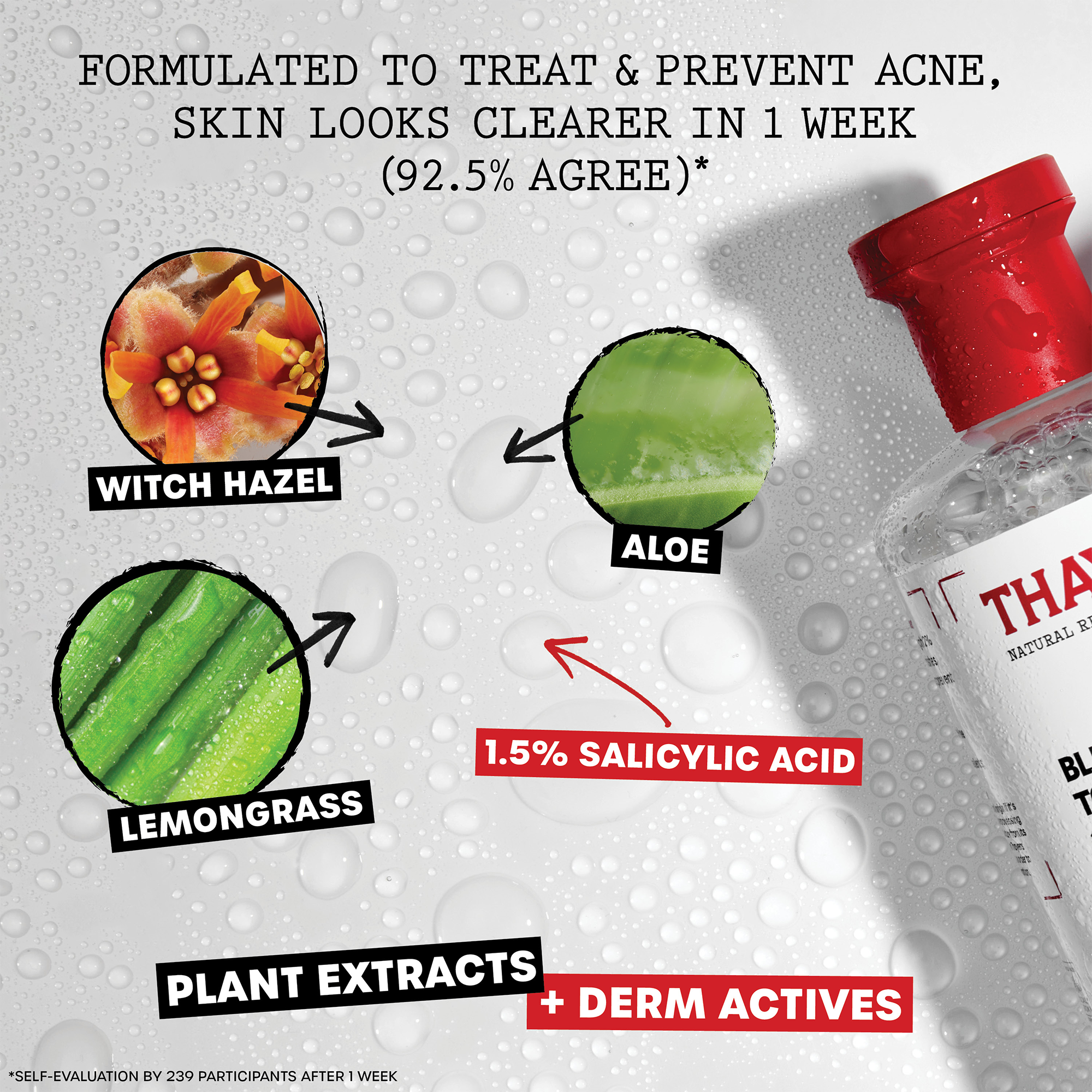 • Salicylic Acid Toner: this acne treatment toner features derm active maximum strength 2% Salicylic Acid and plant extracts Witch Hazel, Lemon Grass, and Aloe to immediately soothe skin