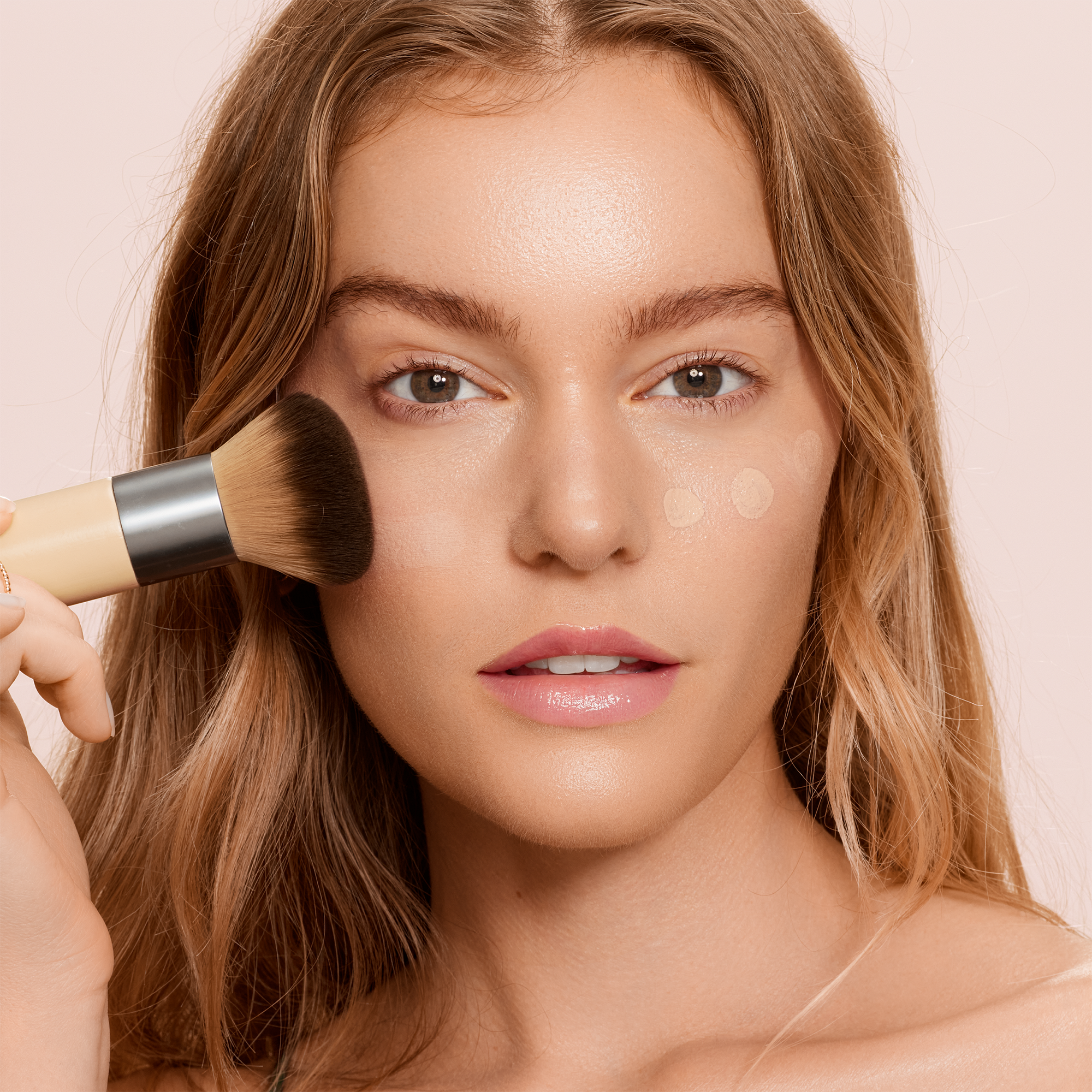 Full Complexion Brush: Dispense quarter size foundation onto brush. Starting in the center of your face and working outward, gently buff foundation in circular movements for buildable coverage. Blend along jawline, neck, and hairline for a seamless look.