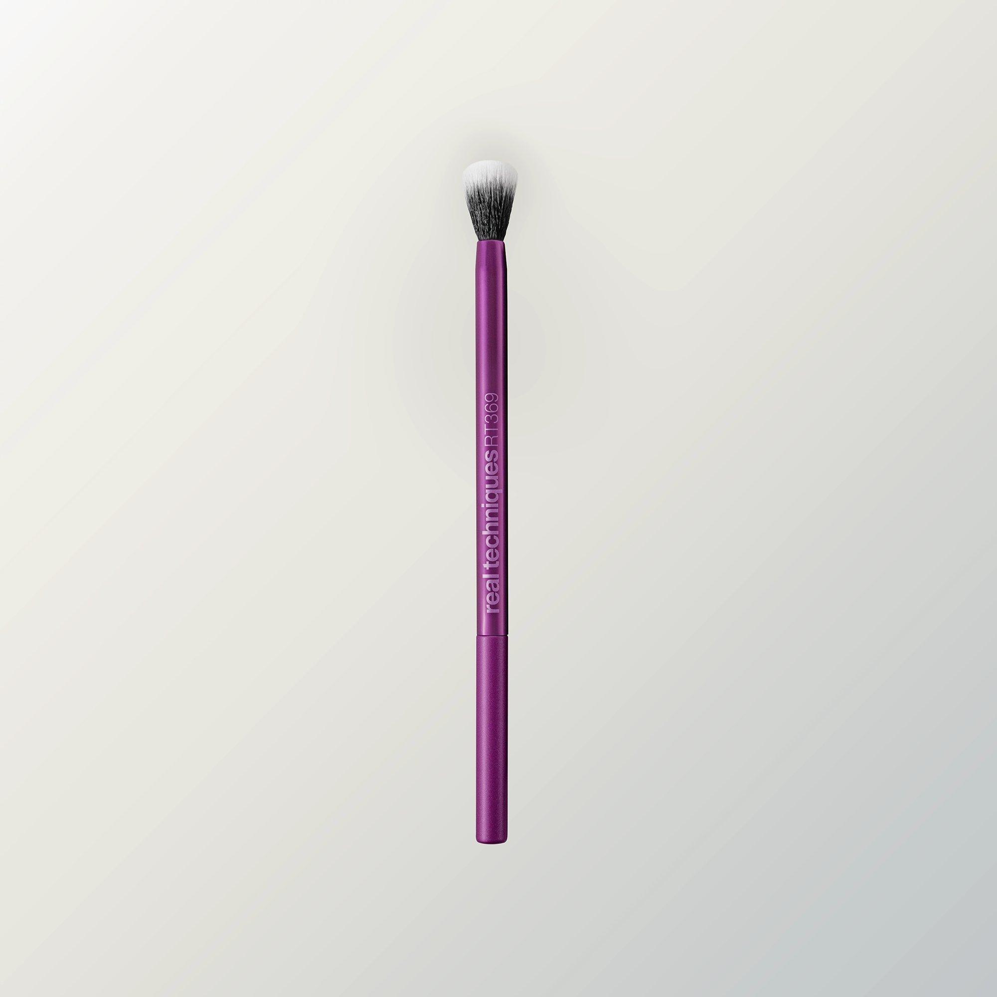 The Real Techniques Blending Crease Brush effortlessly blends and diffuses eyeshadow with its fluffy brush head for seamless application.