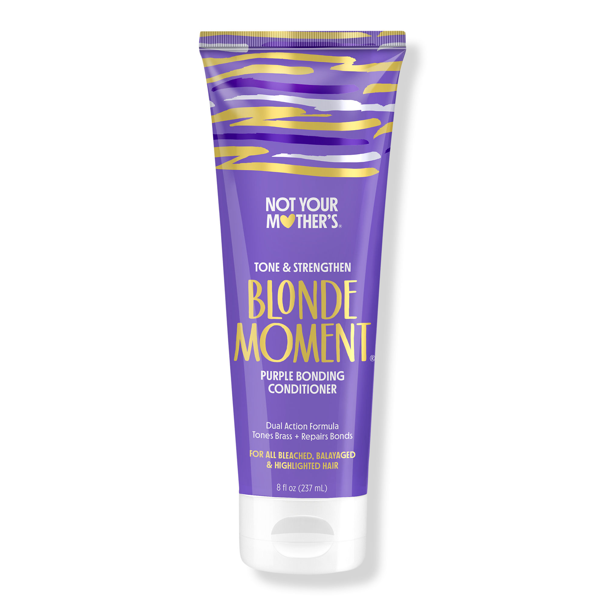 Maintain brighter, stronger, softer lightened tones with Not Your Mother's Blonde Moment Tone & Repair Purple Conditioner. This dual action purple conditioner gently tones and maintains brass-free hair with pastel violet pigments while Bonding Technology repairs and strengthens.