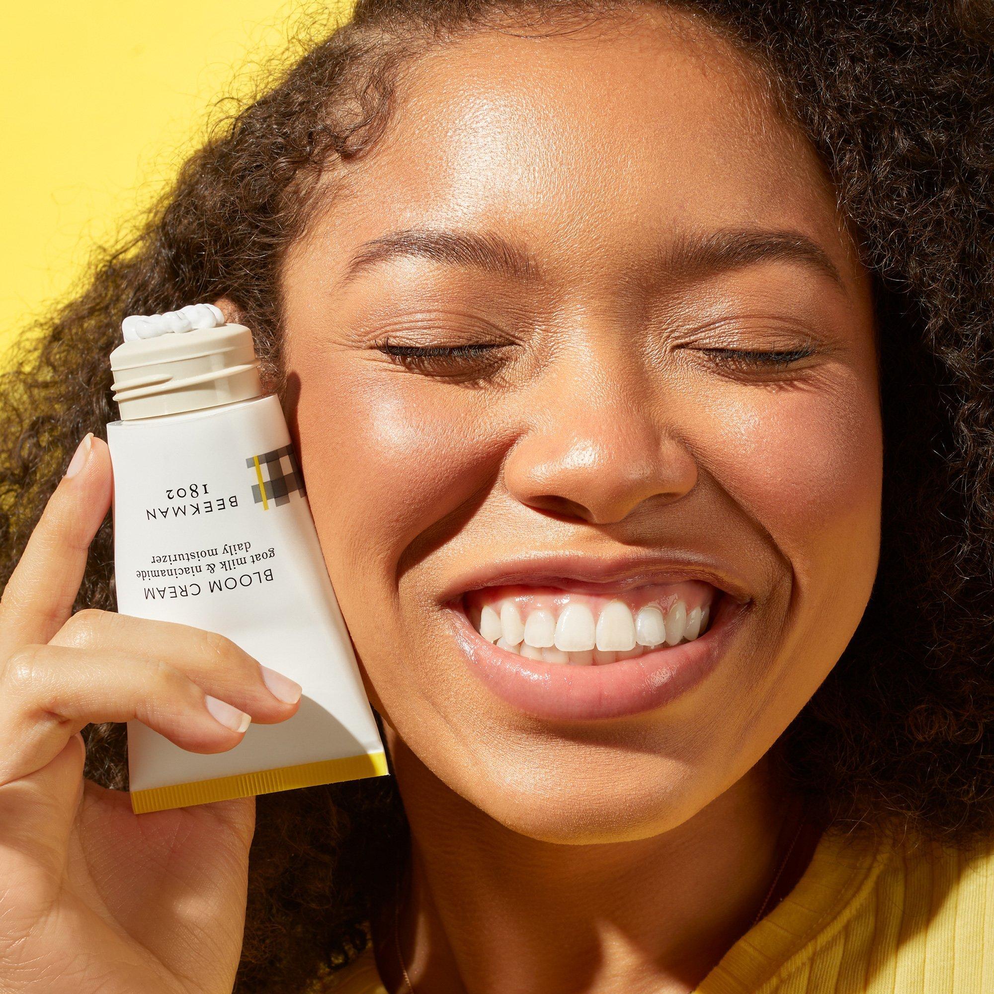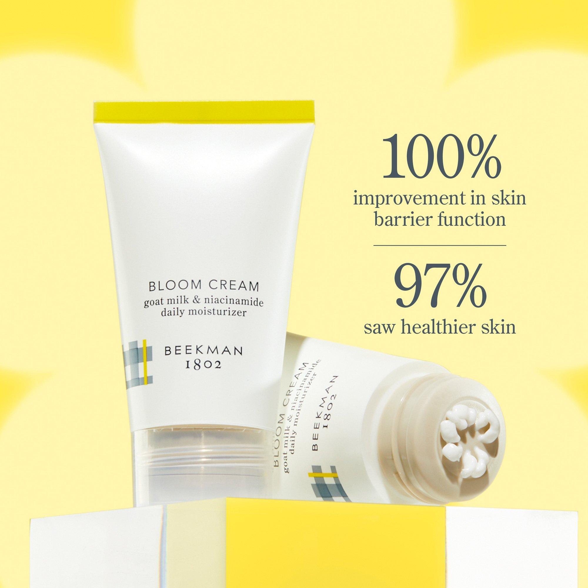 The Beekman 1802 Bloom Cream Daily Moisturizer goes beyond the glow to make your skin bloom! Show your skin some kindness by feeding your skin a shot of goat milk prebiotic and milk postbiotic to restore healthy, youthful radiance and see your skin in full bloom.