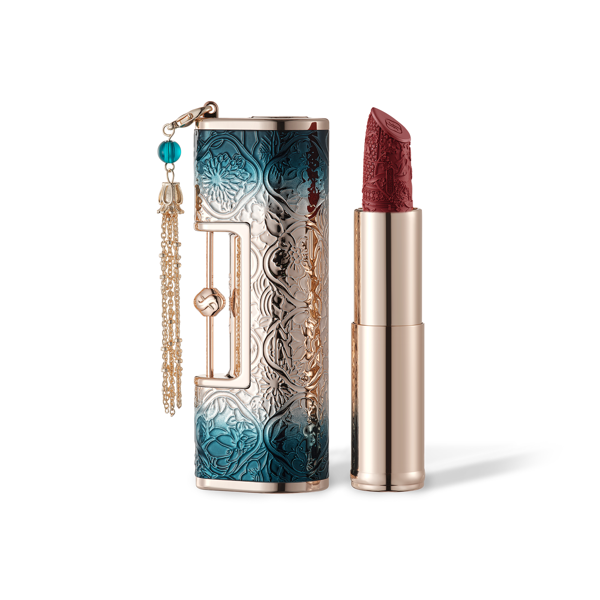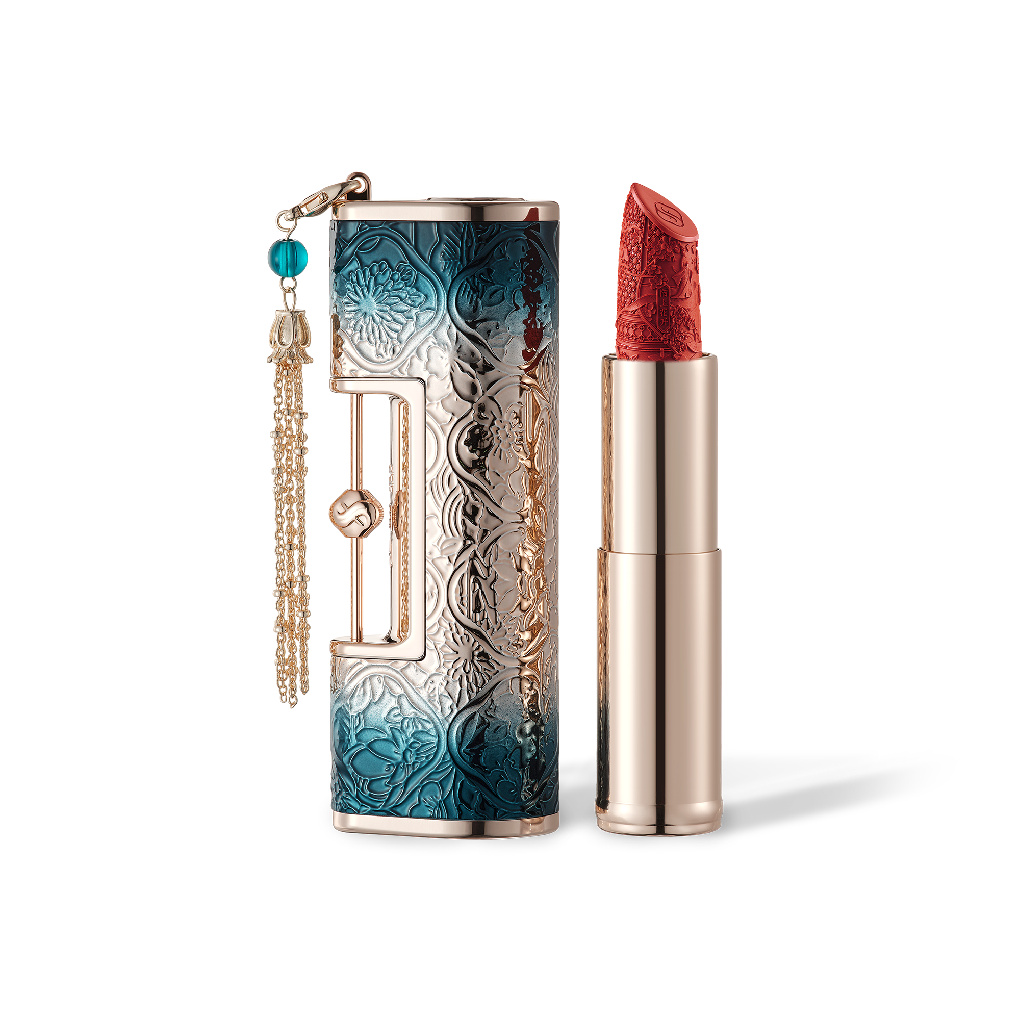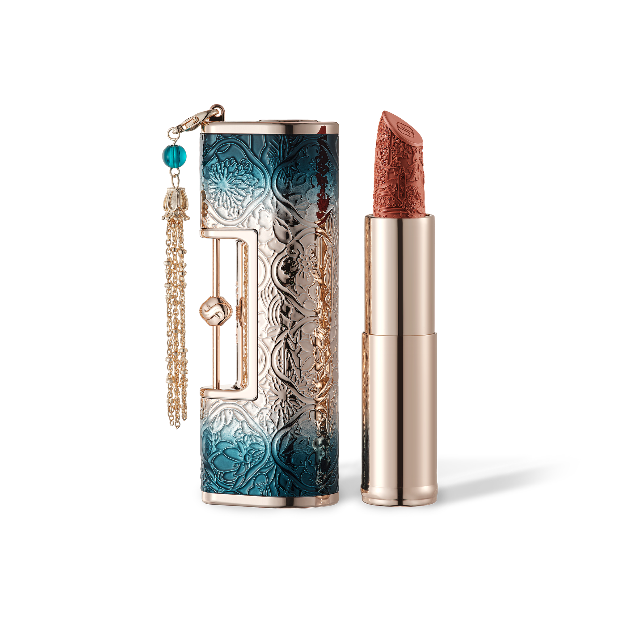 Silky, highly pigmented matte lipstick in an engraved love-lock case inspired by Chinese romance. Engravings depict classic love stories like White Snake and Xu Xian. Enriched with cotton rose, summer snowflake flower and Madonna lily extracts to help nourish lips. Ideal romantic gift.