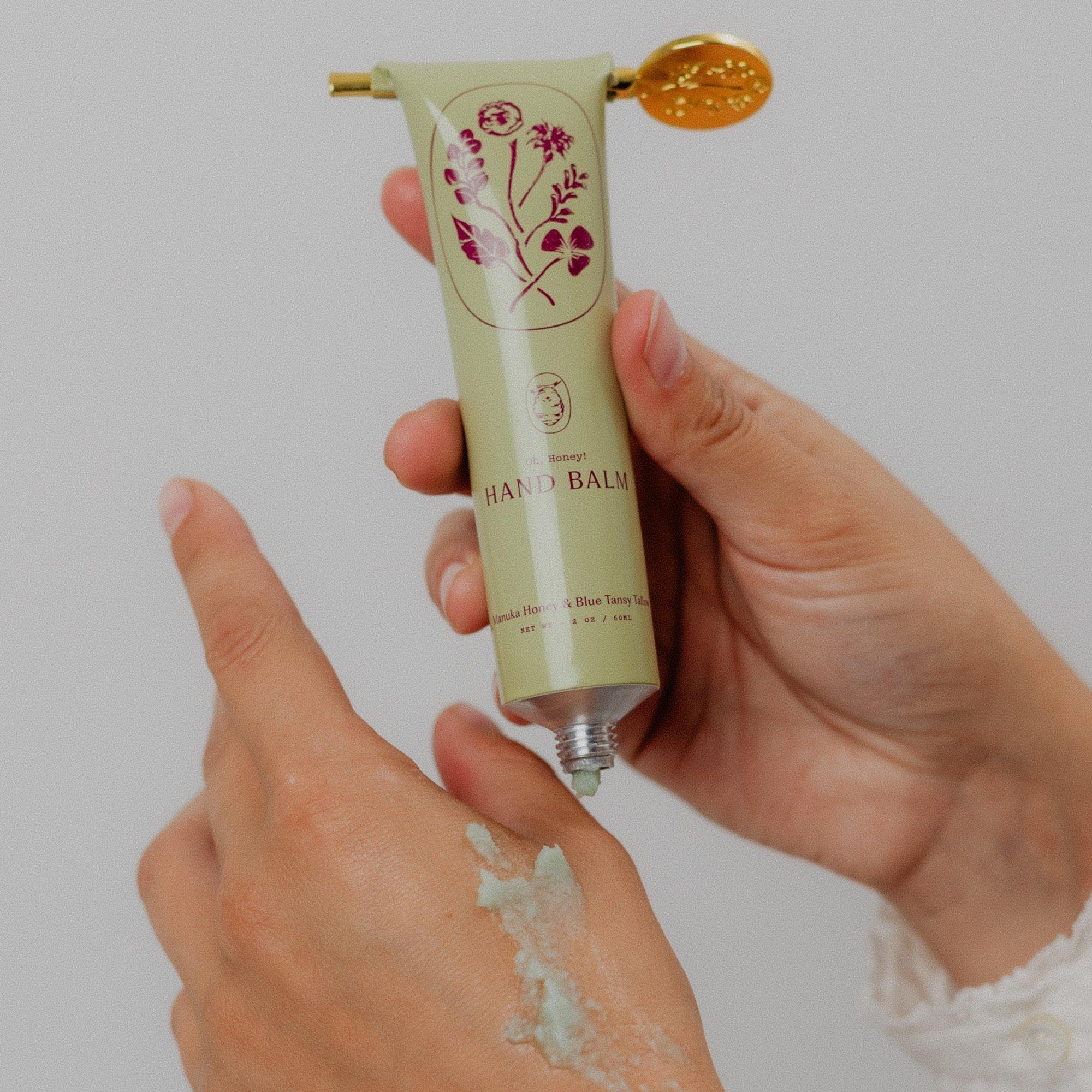 An ultra-nourishing hand balm with blue tansy and manuka honey to soothe dryness and support skin repair. Rich, comforting moisture absorbs easily to leave hands soft and resilient.