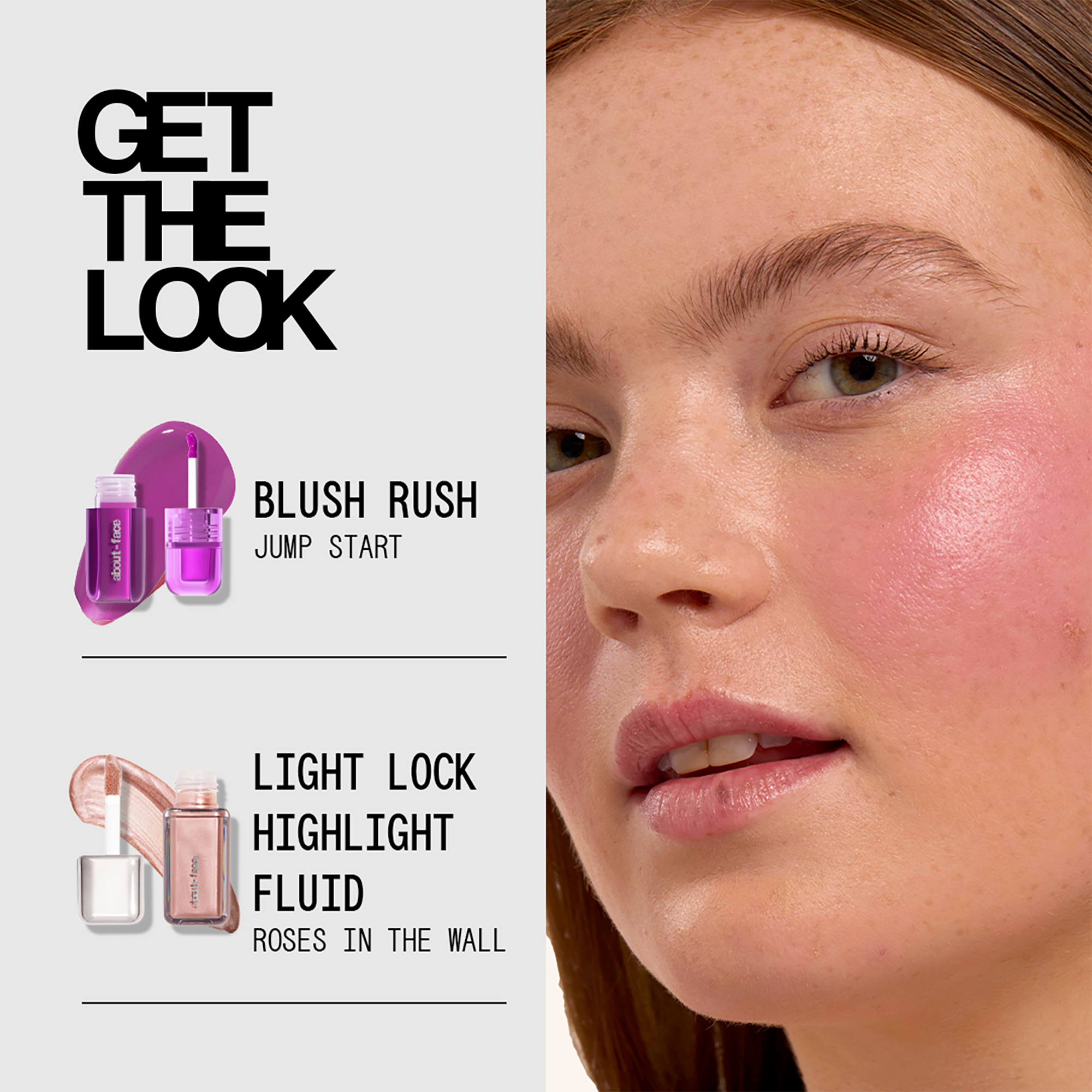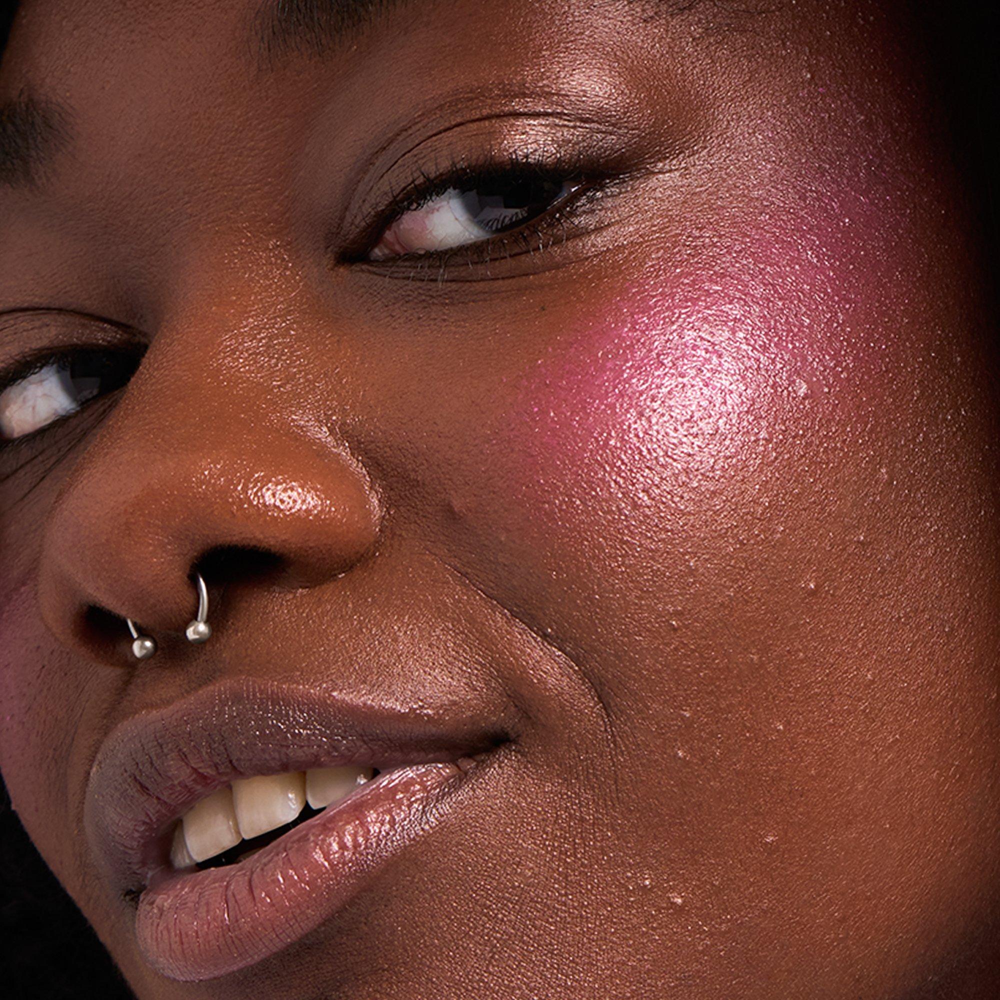 about-face Blush Rush Liquid Blush is an ultra-pigmented, fluid blush that blends seamlessly + glistens on skin.