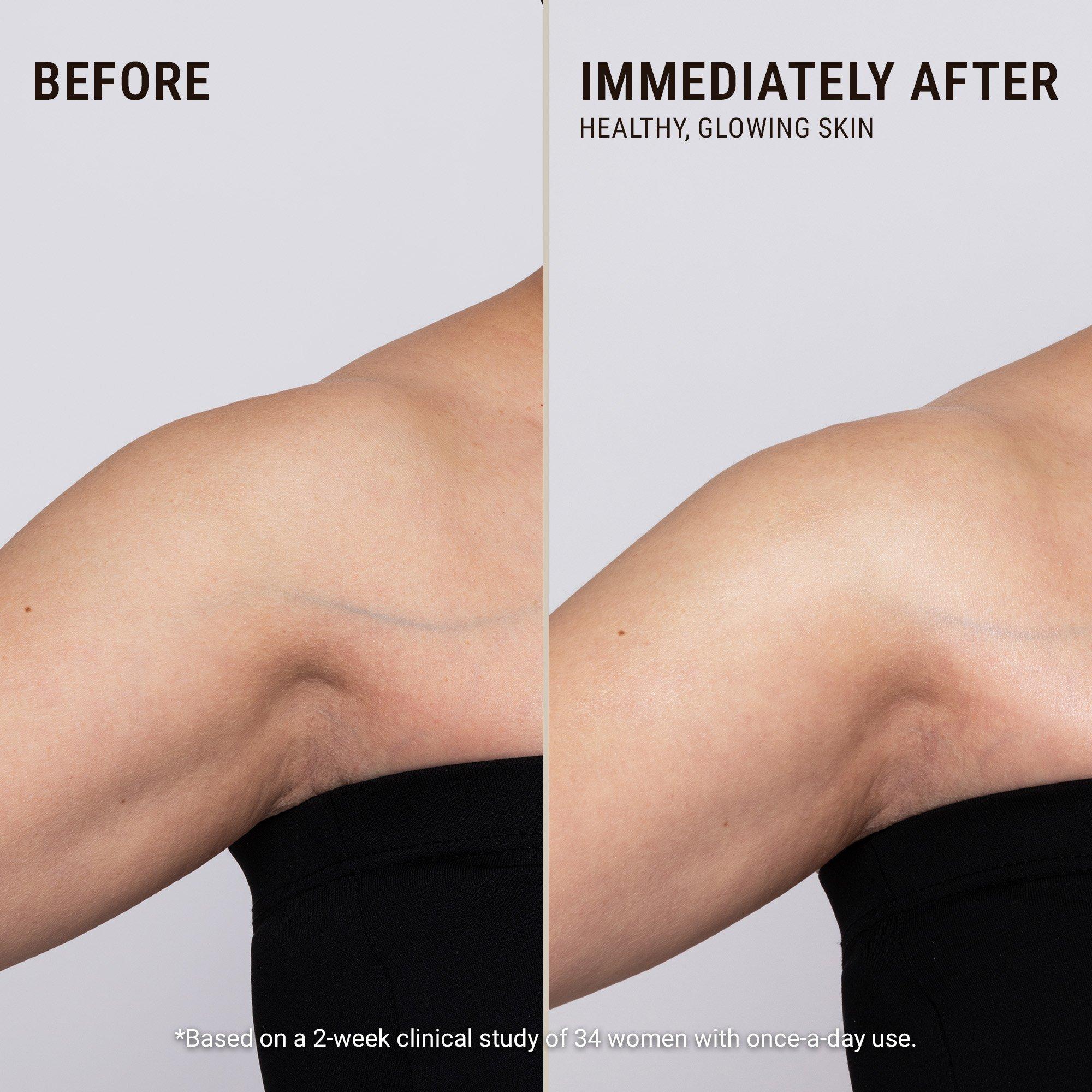 Apply a generous amount to clean, dry skin \& massage in circular motions until fully absorbed.