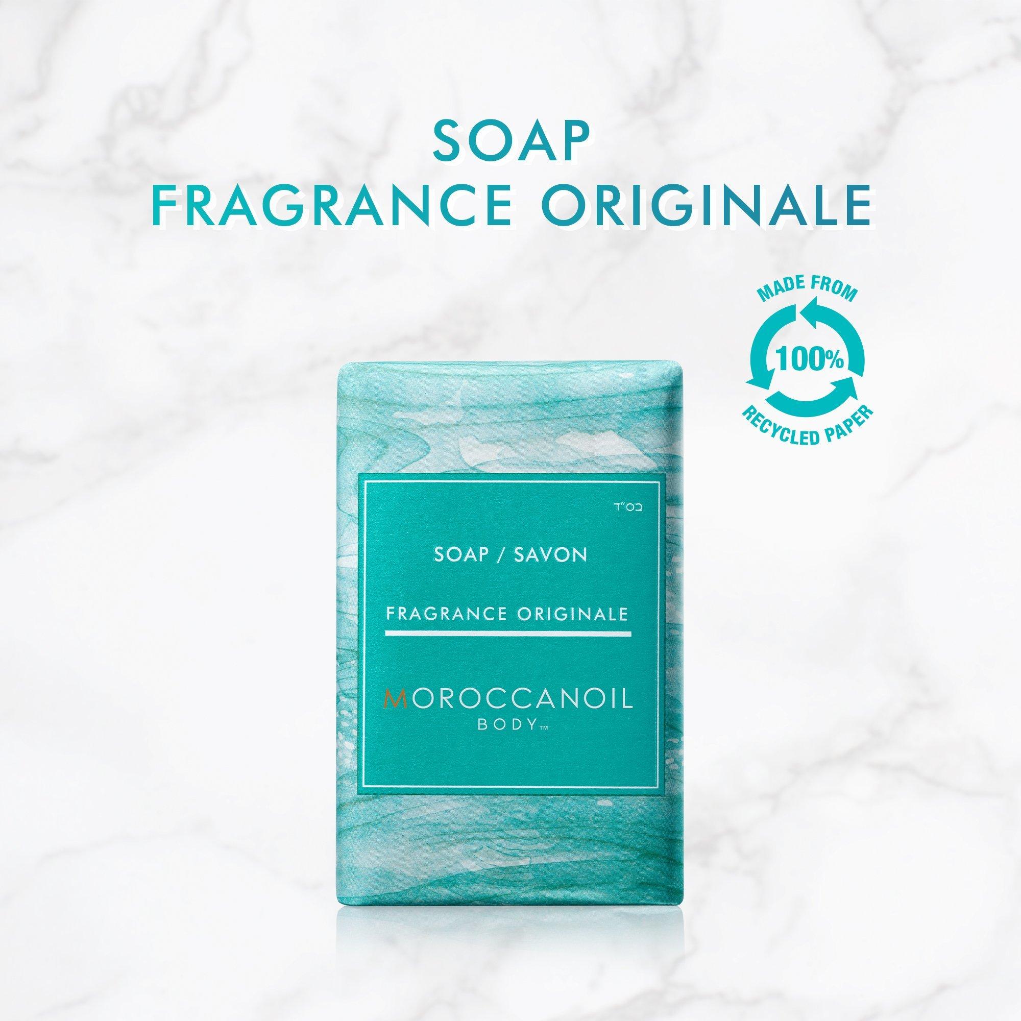 Moroccanoil Soap is a gentle body bar that helps nourish, hydrates and strengthen skin. The formula combines antioxidant-rich argan oil, aloe leaf extract, and shea butter to moisturize as it cleanses. Fragranced with the Moroccanoil signature scent, a blend of spicy amber and sweet floral notes.