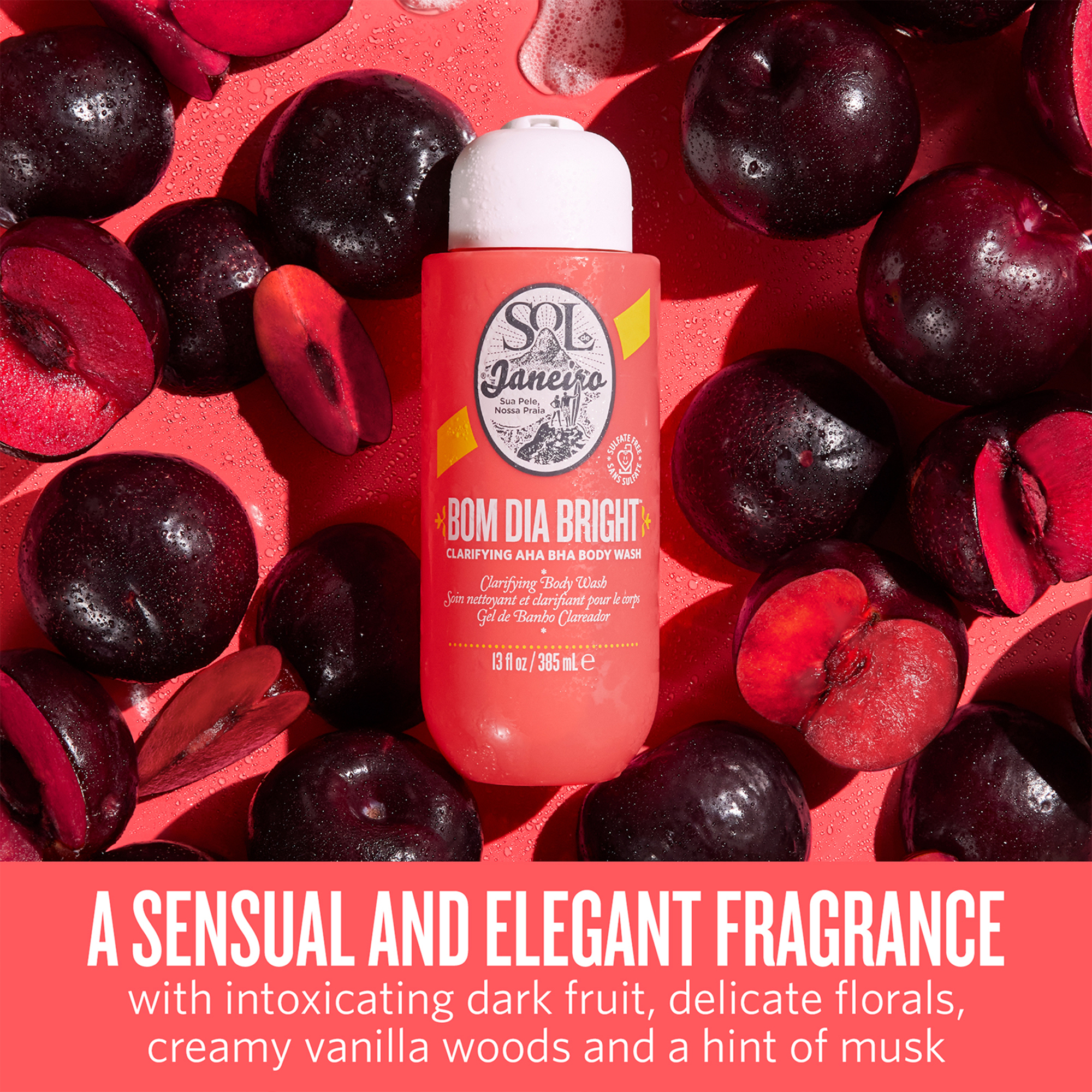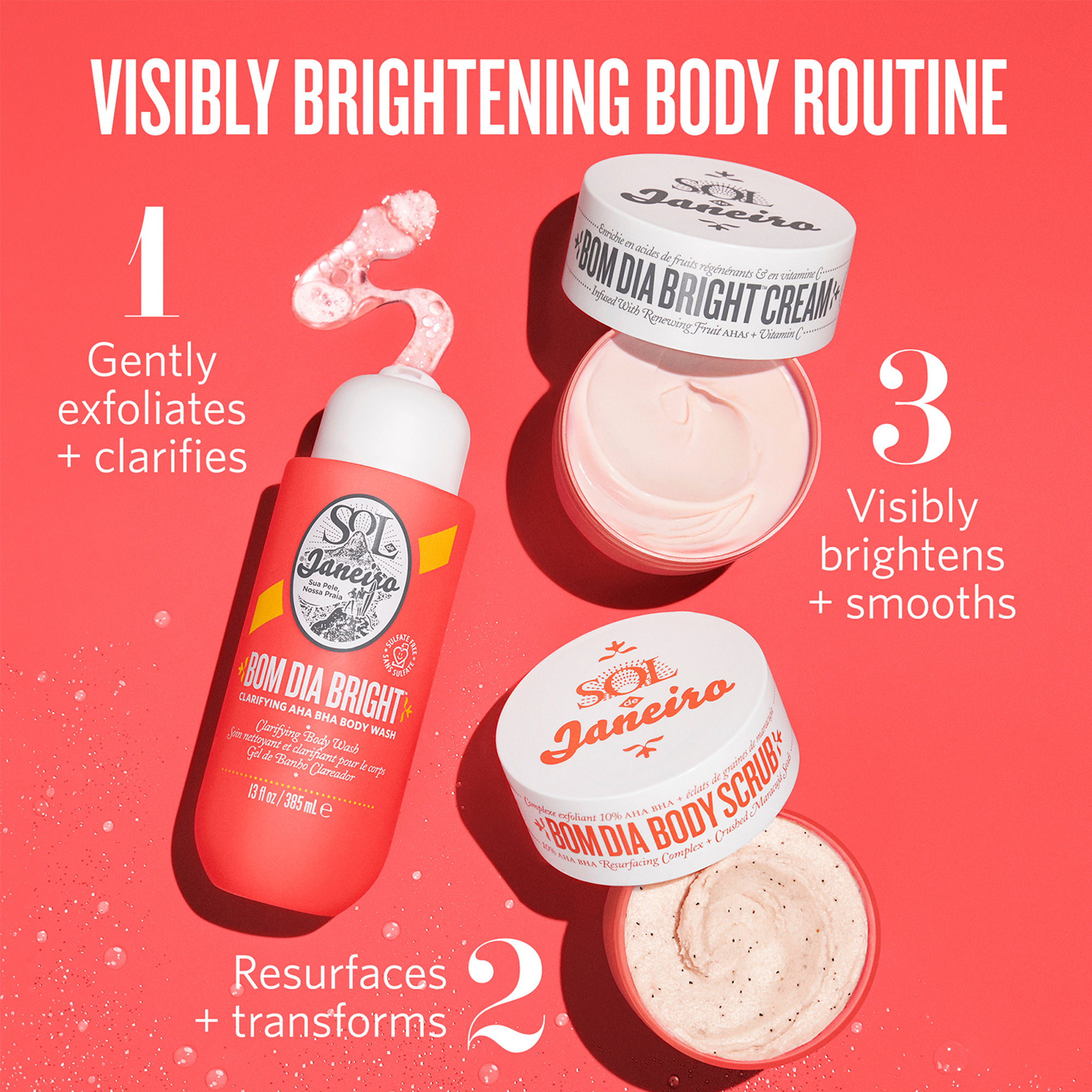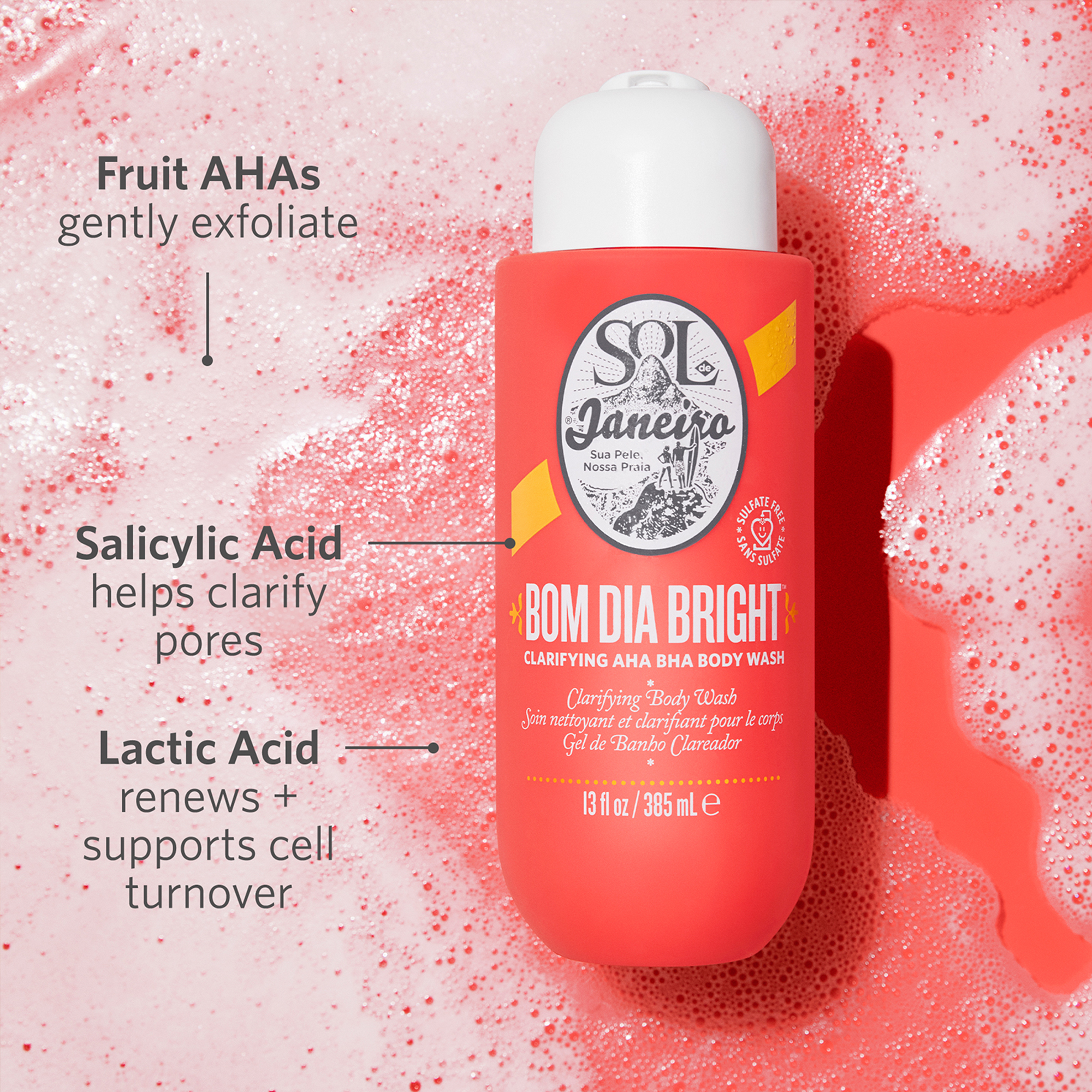 Sol de Janeiro's Bom Dia Bright Clarifying AHA BHA Body Wash helps unclog pores and visibly smooth texture for radiant, clearer-looking skin.