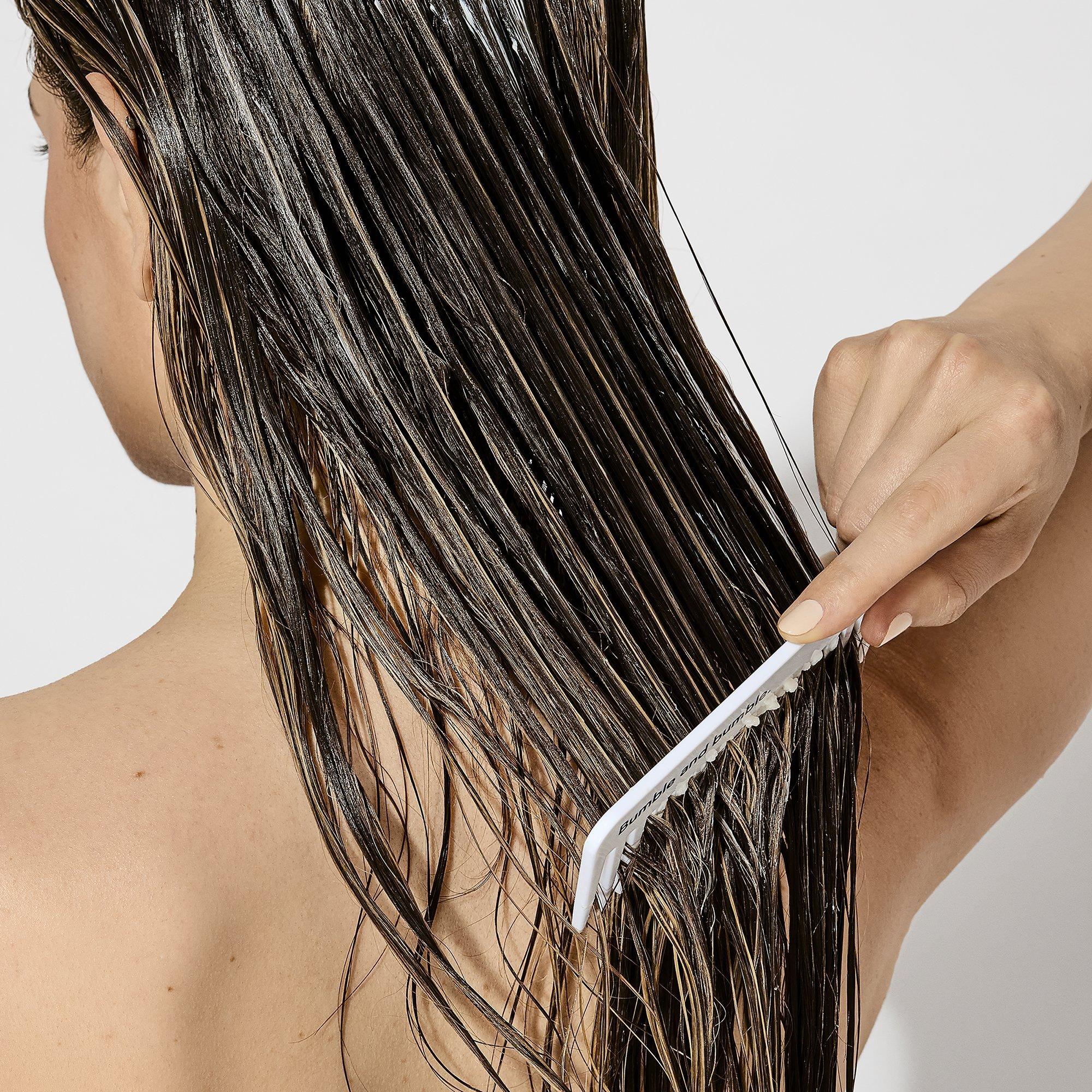 From the Pros: Work conditioner from lengths to the roots to get the most product in the areas that need it the most. Use a wide-tooth comb to detangle hair and evenly distribute product.