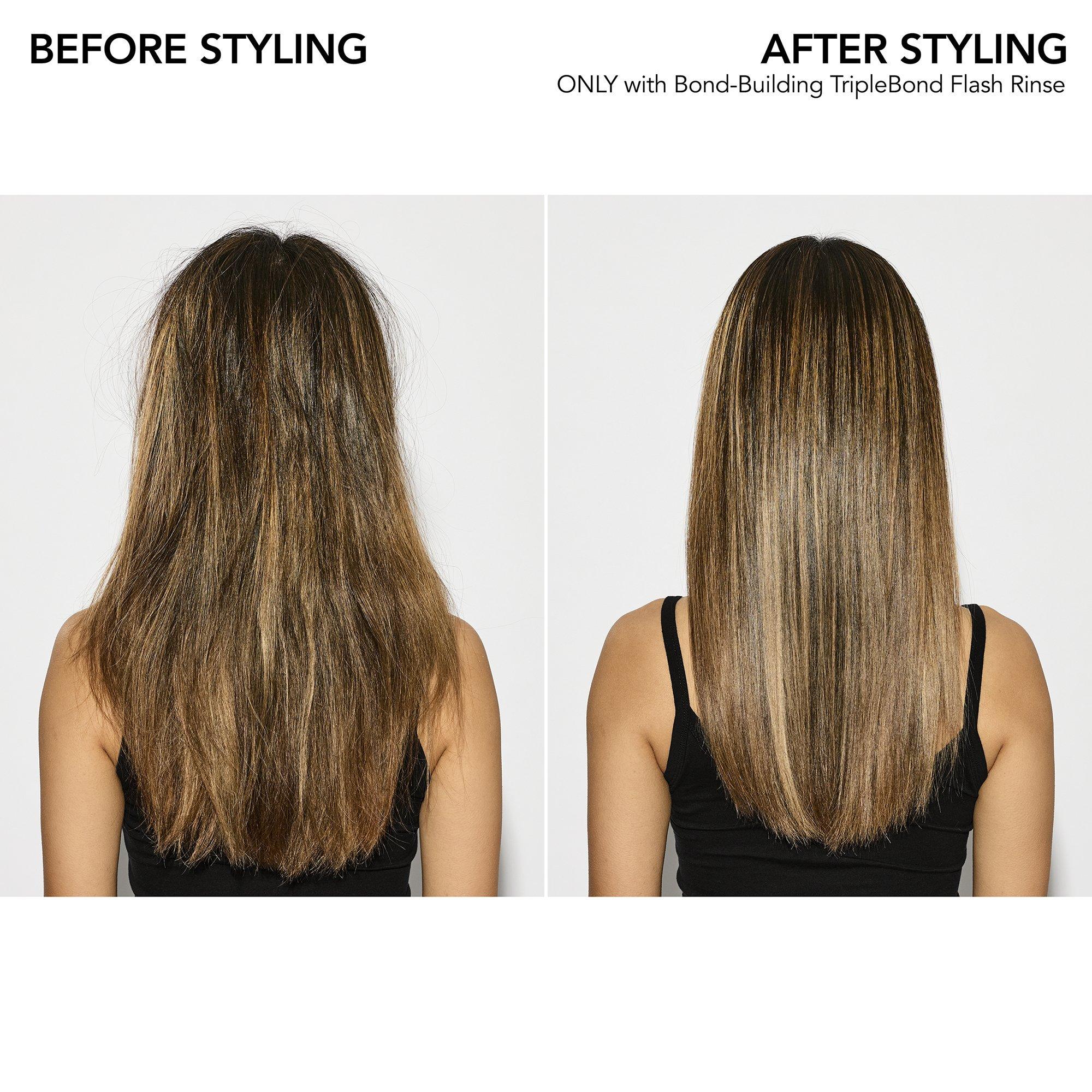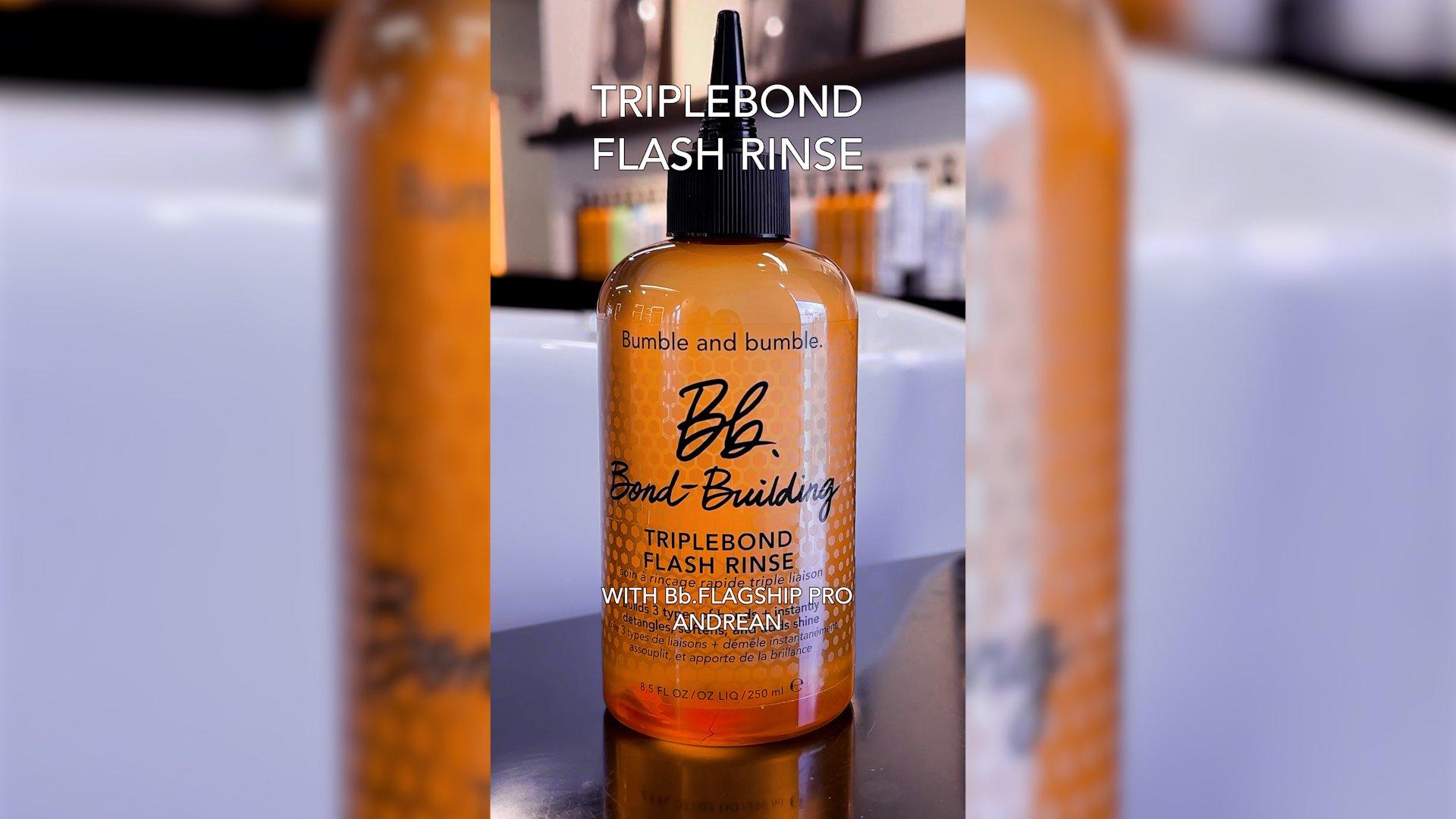 From the Pros: For heat-tool lovers and color chameleons, try using Bond-Building TripleBond Flash Rinse not only as a weekly treatment between your favorite Bumble and bumble shampoo and conditioner, but also alone as a midweek bond-building boost. For a quick refresh after working out, reach for Bond-Building TripleBond Flash Rinse as a one-step rinse.