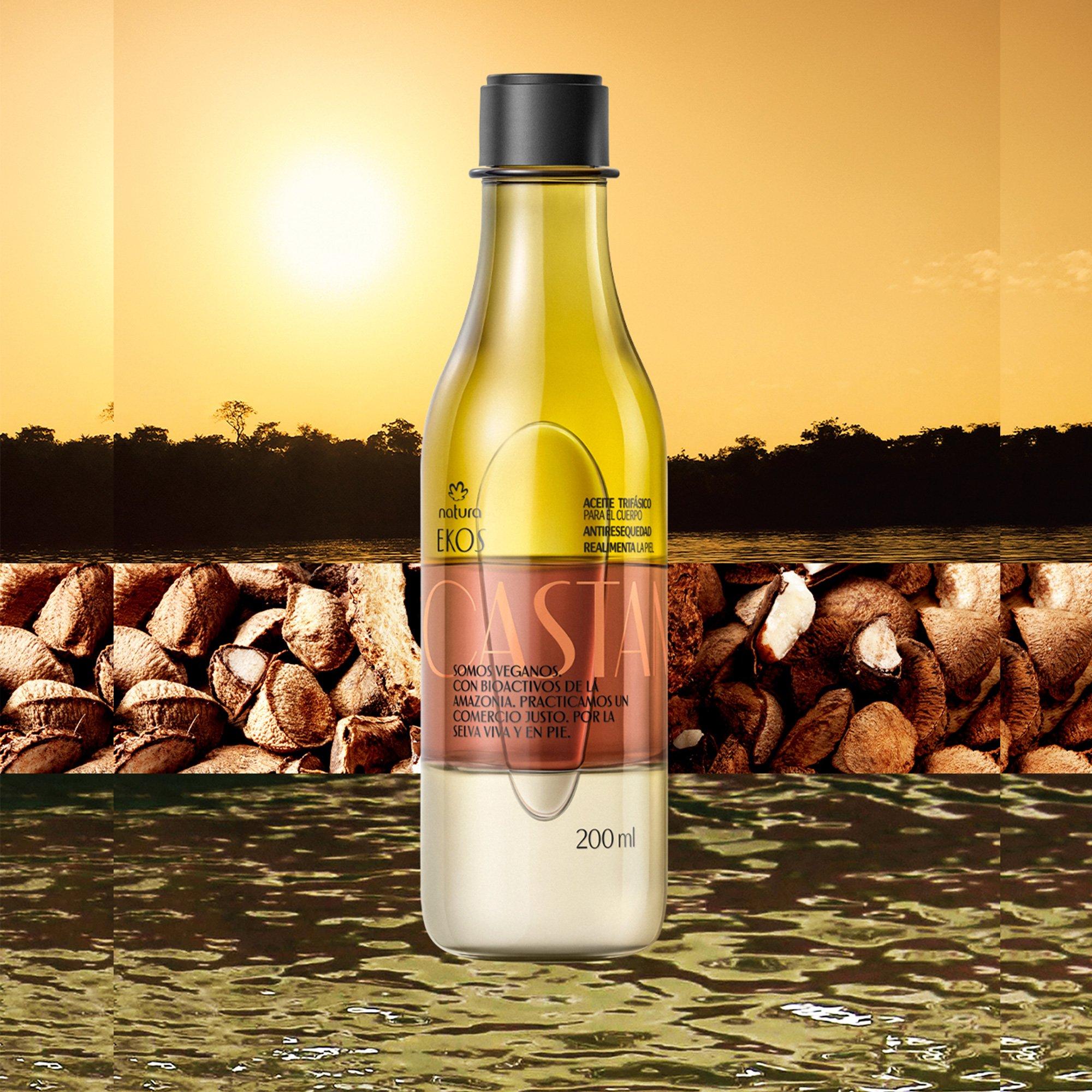 This triple-phase body oil nourishes and hydrates dry skin with Castanha (Brazil nut) oil. Rich in essential fatty acids, it restores moisture, strengthens the skin barrier, and improves elasticity. Lightweight and fast-absorbing, it leaves skin soft, smooth, and radiant.