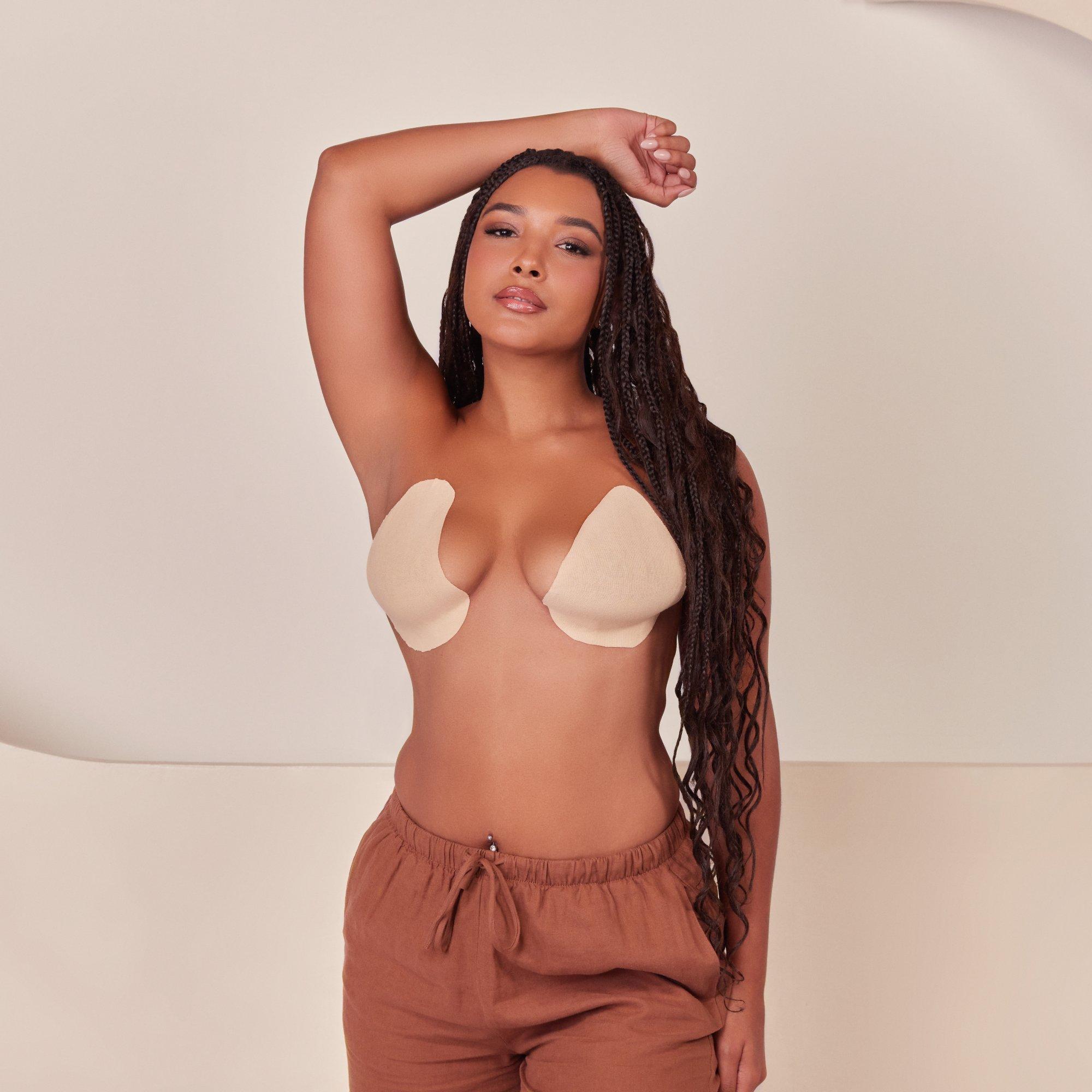 Secure & Lift with Hollywood Fashion Secrets Breast Contour Tape. This versatile bra alternative is made of a sturdy yet soft stretch material that conforms to your figure & provides reliable support. Customize the size to your bra size or desired coverage.