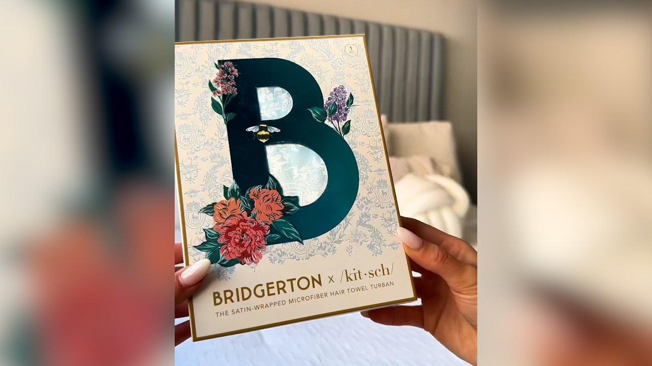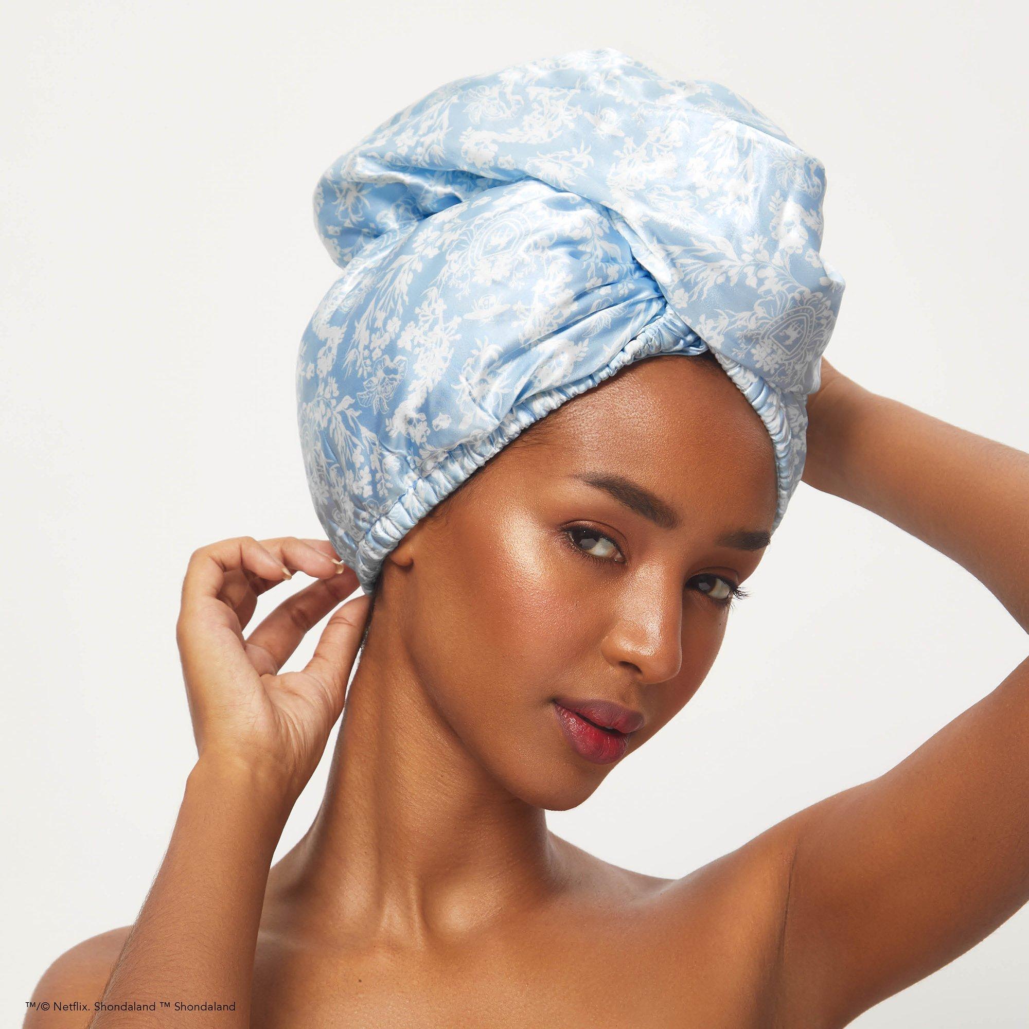 Bridgerton x Kitsch Satin Wrapped Hair Towel. Debut flawless, frizz-free hair with silky smooth, satin-wrapped, quick-drying microfiber hair towel - reduce heat drying time without stripping your strands of natural oils & conditioners.