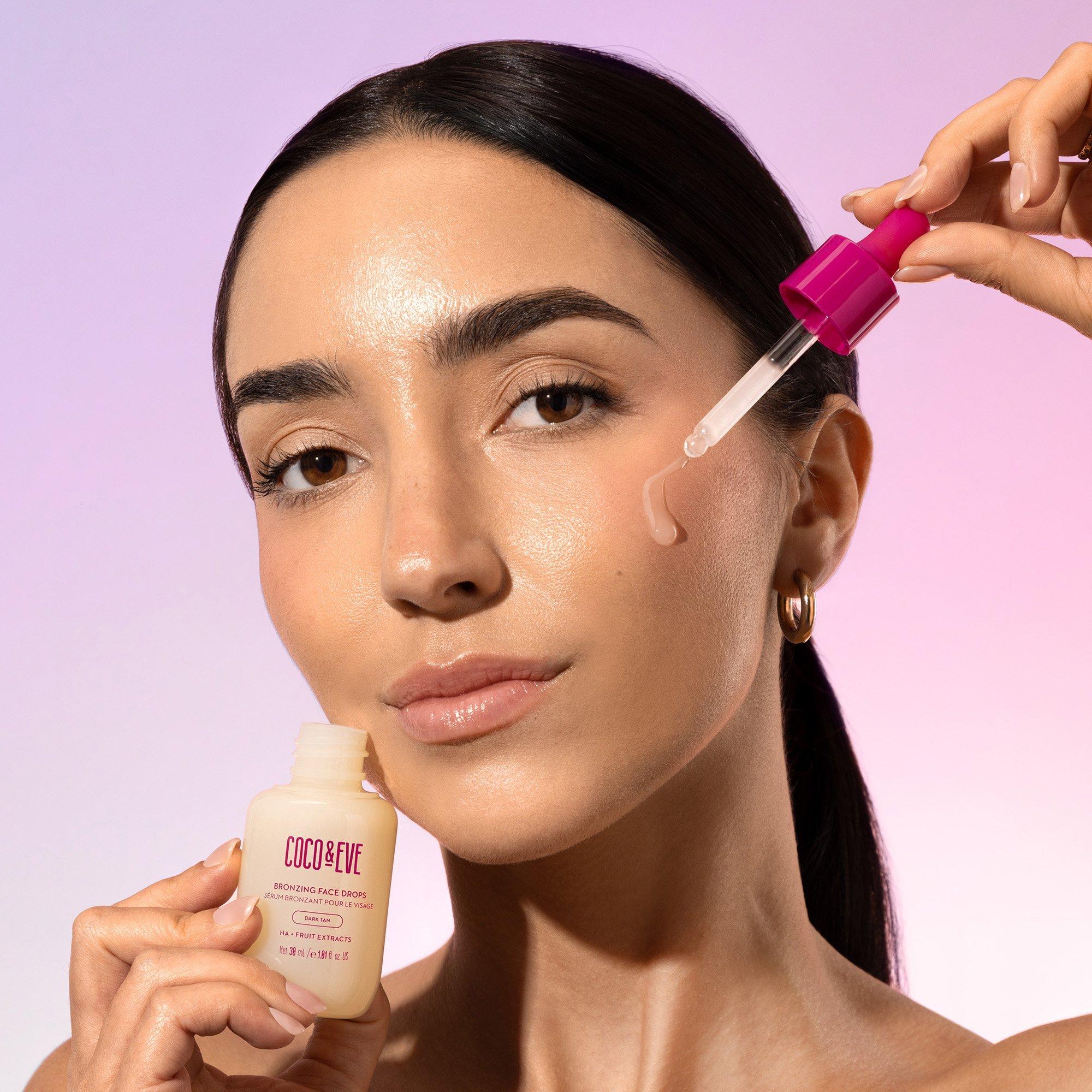 Achieve a natural, sun-kissed glow while hydrating and plumping your skin. Coco & Eve Bronzing Face Drops deliver a subtle, gradual and buildable tan. Infused with Hyaluronic Acid, Dragon Fruit, and natural DHA for a customized Bali-inspired bronze.