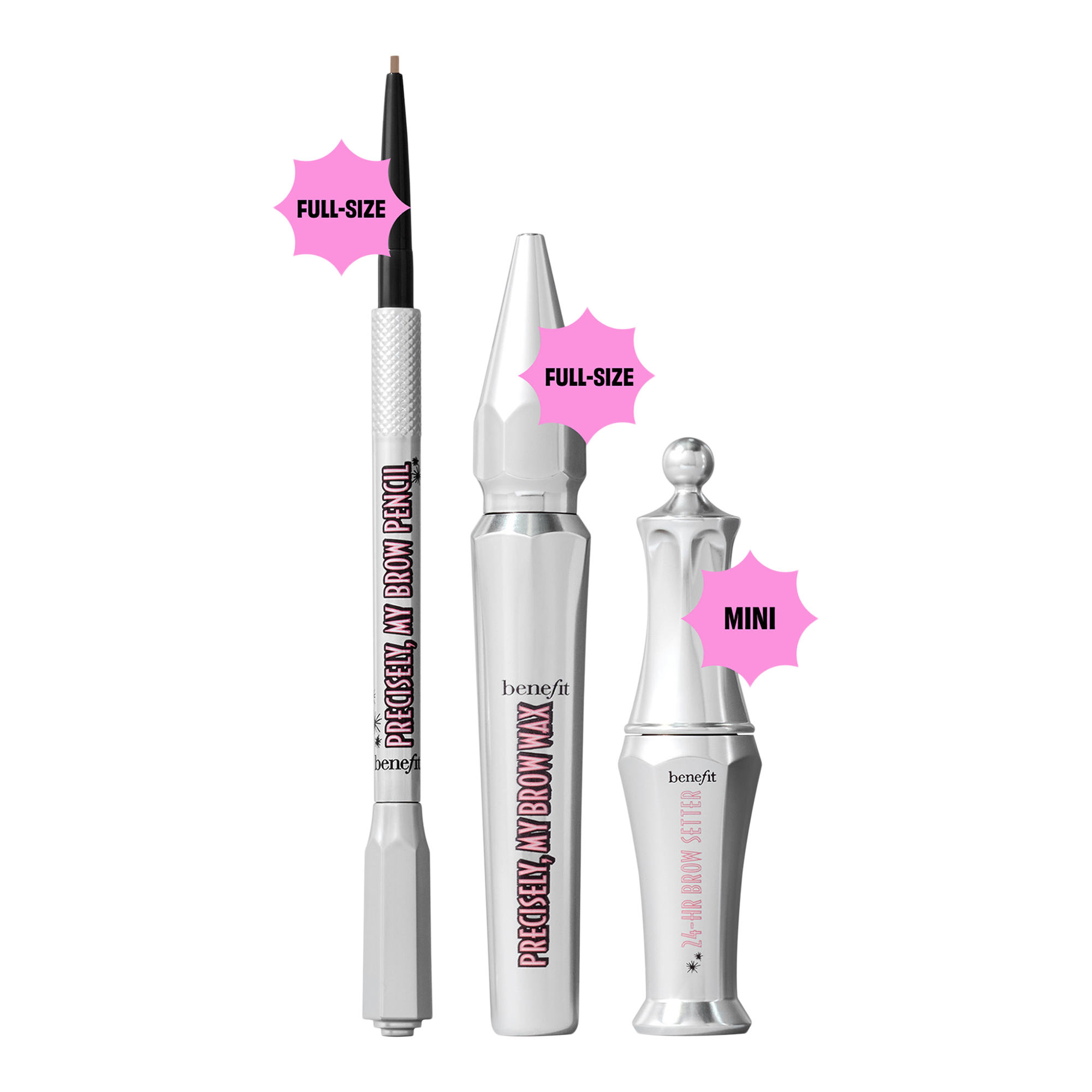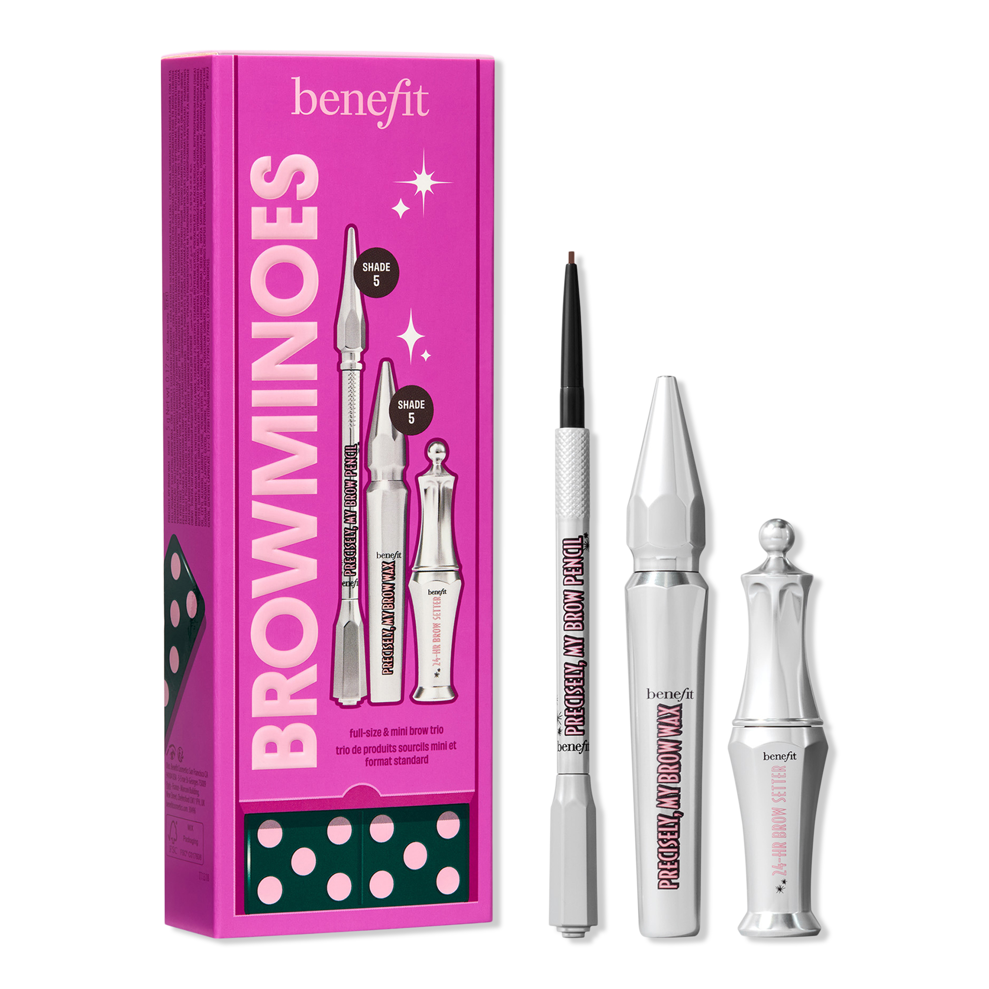 Start with Benefit #1* defining brow Precisely, My Brow Pencil for natural-looking, precisely defined brows that last. Then, tint, tame, & amp up the volume with Gimme Brow+. Lock it all in with 24-HR Brow Setter brow gel for a long-lasting, flake-free hold all in the Browminoes Holiday Gift Trio.