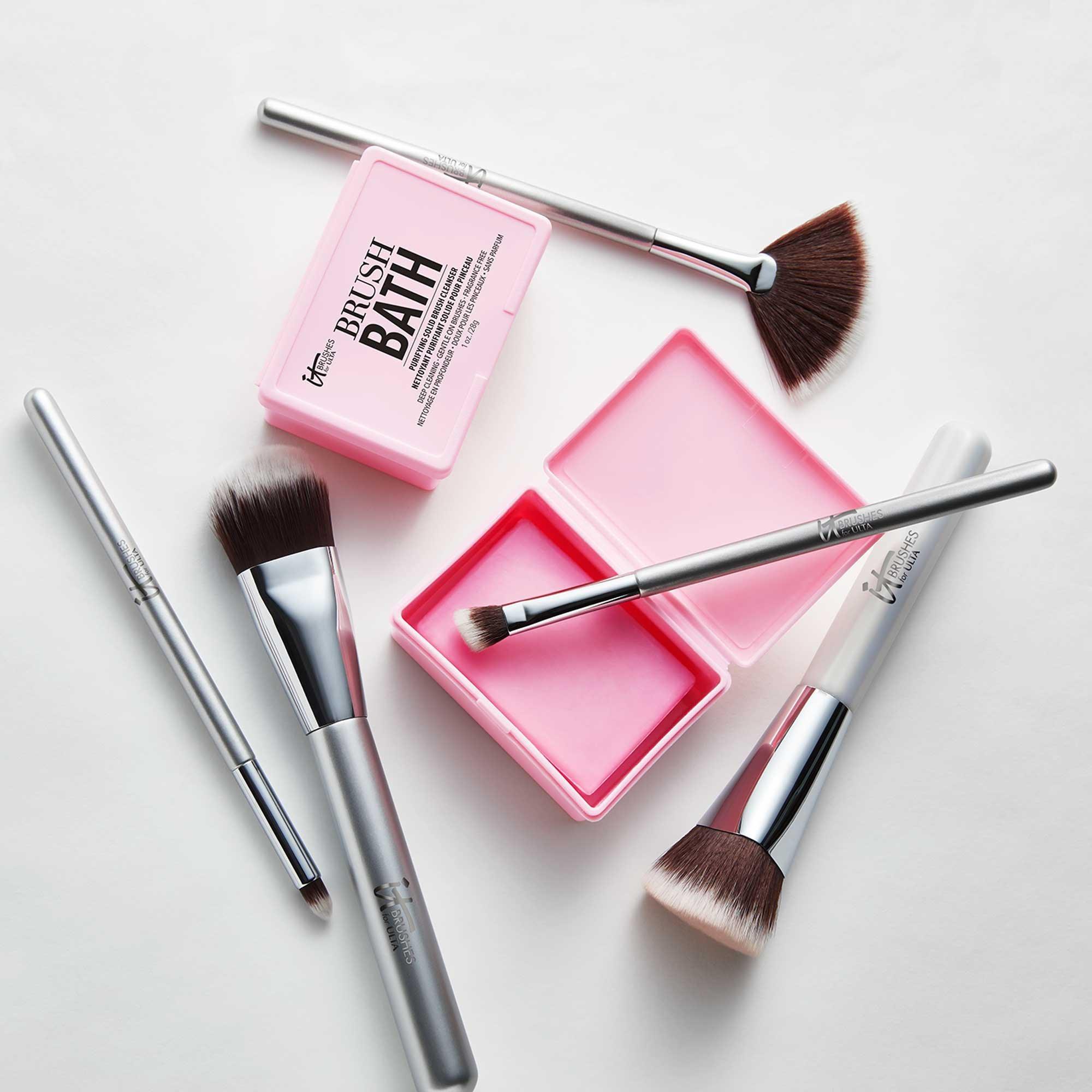 Use IT Brushes For ULTA Brush Bath Purifying Solid Brush Cleanser on the days your makeup brushes and sponges look like they could use a deeper clean. This instant makeup, dirt and oil eliminator works to deliver a thorough clean after just one use while still being gentle on your beauty tools!