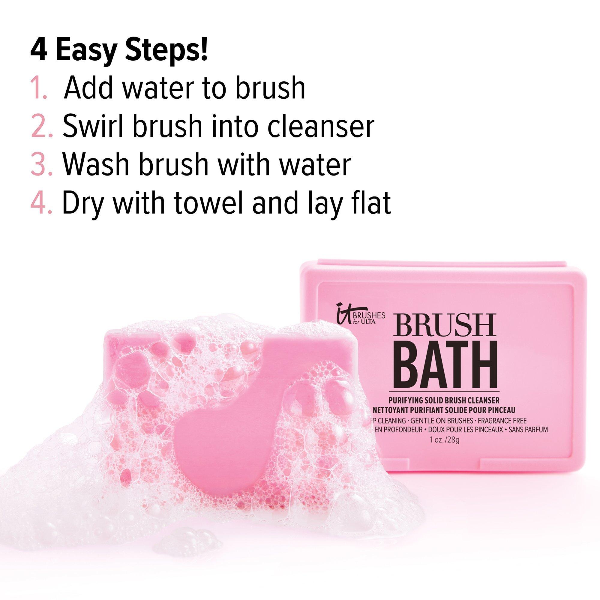 Use IT Brushes For ULTA Brush Bath Purifying Solid Brush Cleanser on the days your makeup brushes and sponges look like they could use a deeper clean. This instant makeup, dirt and oil eliminator works to deliver a thorough clean after just one use while still being gentle on your beauty tools!