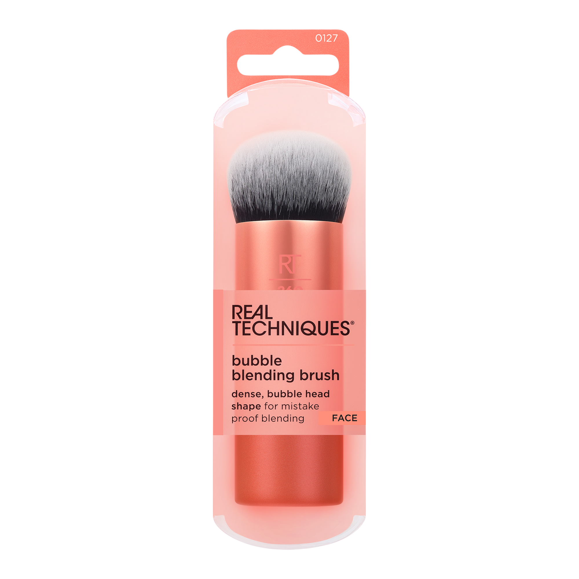 The Real Techniques Bubble Blending Makeup Brush features a dense, bubble-shaped head to seamlessly blend any formula for a fast, all-over finish.