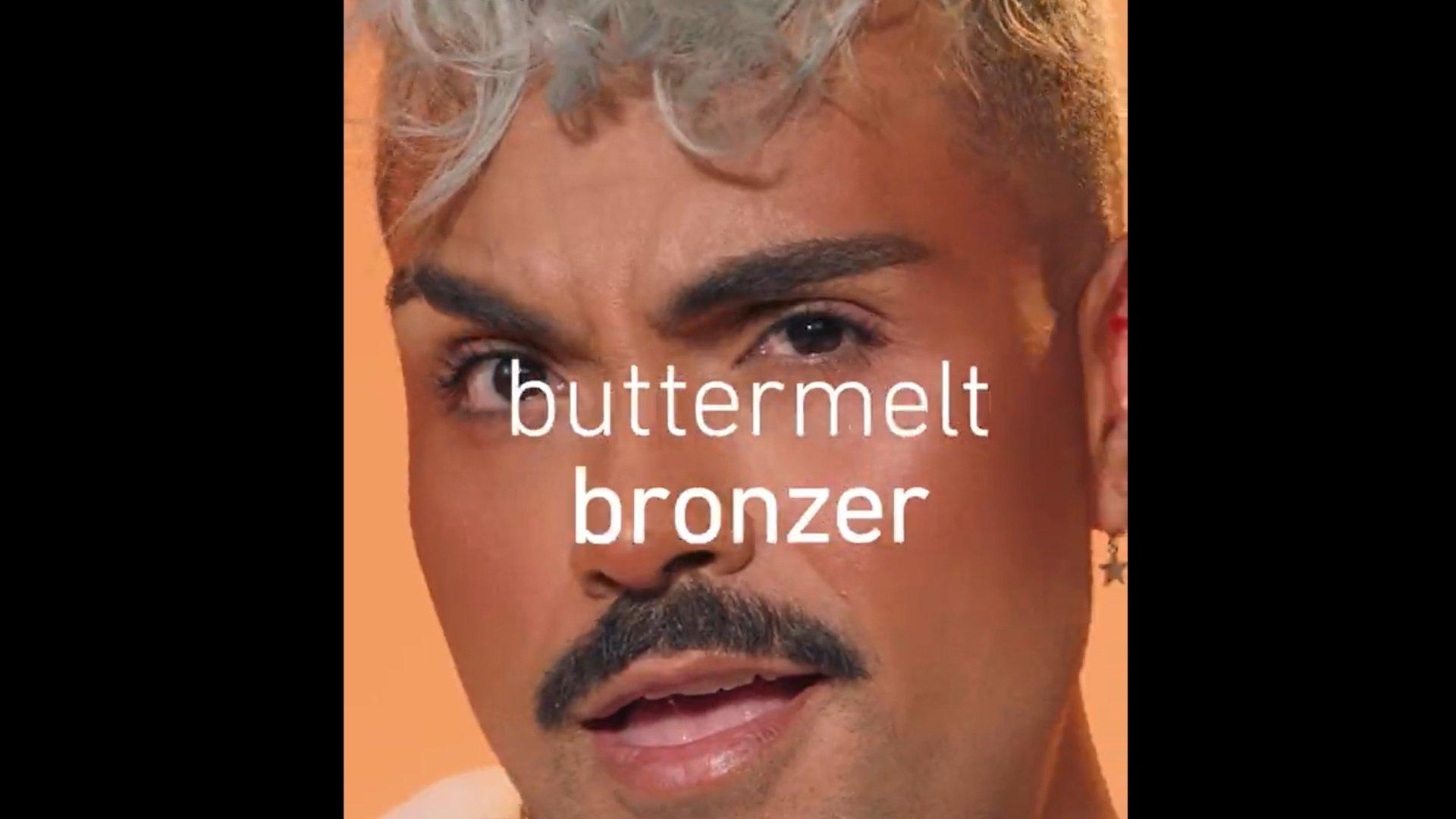 Want to know how to achieve that buttered up sun-soaked bronze? We got you! To bring the heat, using buttermelt bronzer brush sweep on starting from the temple, across the cheek, and along the jawline. Using remaining pigment to blend onto the neck and décolleté. Apply in a circular motion, continuously blending and buffing where the sun naturally hits! There you have it a buttered-up glow that's not going to budge!