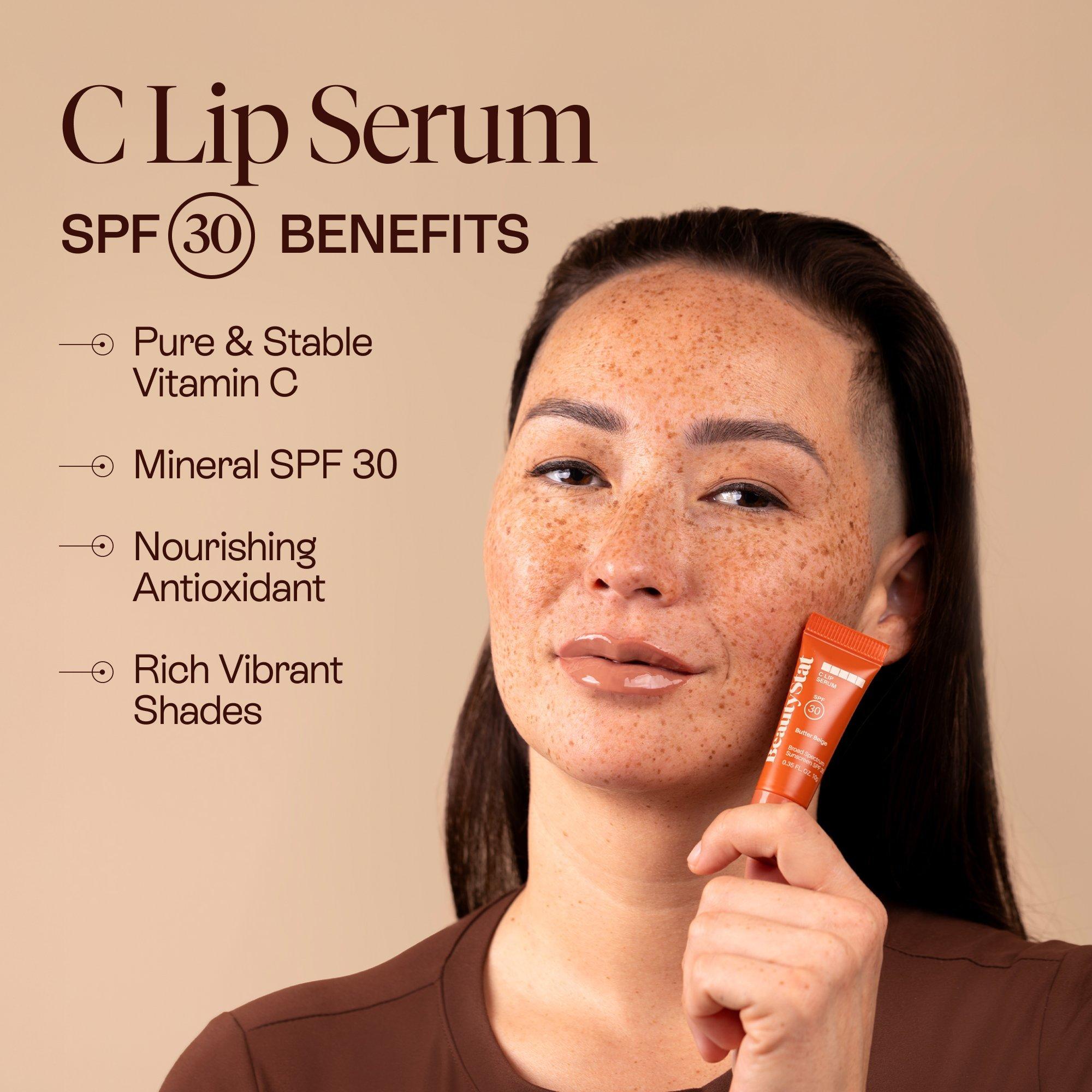 BeautyStat's C Lip Serum SPF 30 is a revolutionary mineral lip serum in two universal shades. Features L'Ascorbic Acid and peptides for hydration, plumping and brightening. Protects while delivering clinically proven results.