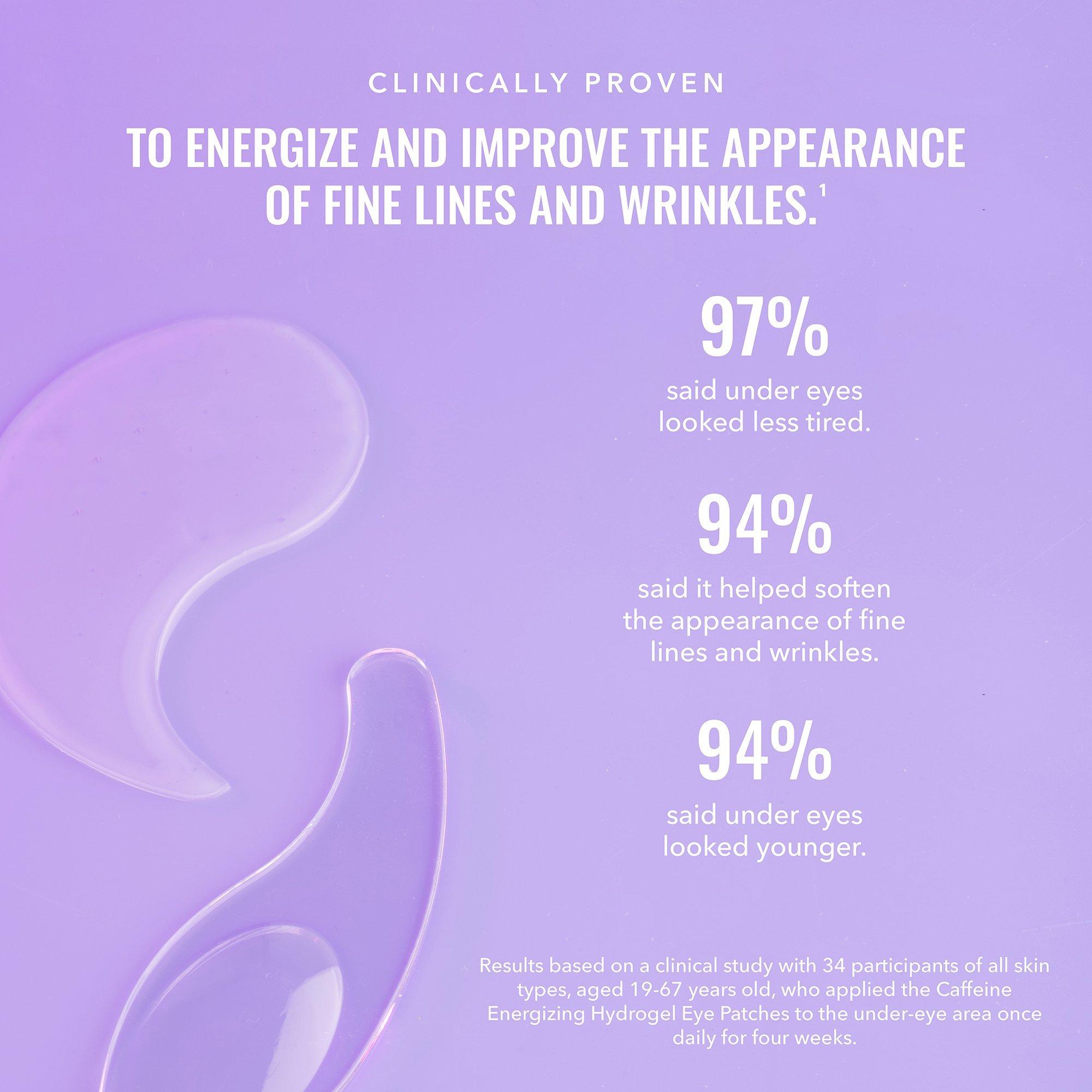 Get a bright, wide-awake look - no matter how much sleep you got the night before - with Good Molecules Caffeine Energizing Hydrogel Eye Patches. These masks work to brighten, hydrate, and reduce visible puffiness around the eyes. A perfect quick pick-me-up for puffy, tired-looking eyes.