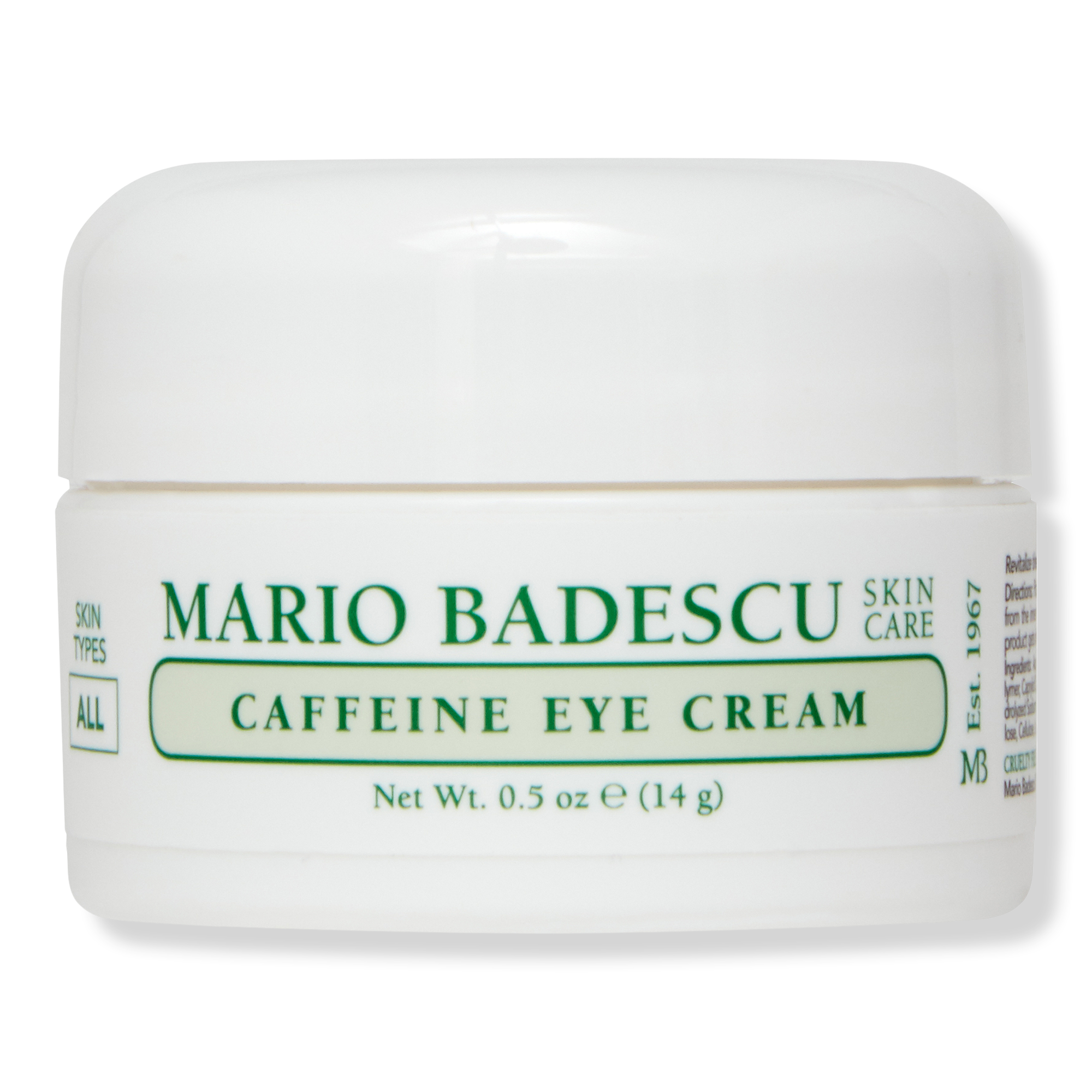 Mario Badescu's Caffeine Eye Cream is a Caffeine-infused eye cream for tired under-eyes. This eye cream has a light, silky texture that slips across the skin and sinks in seamlessly. Hydrates, softens, and smooths and helps de-puff to promote more radiant looking under eyes.
