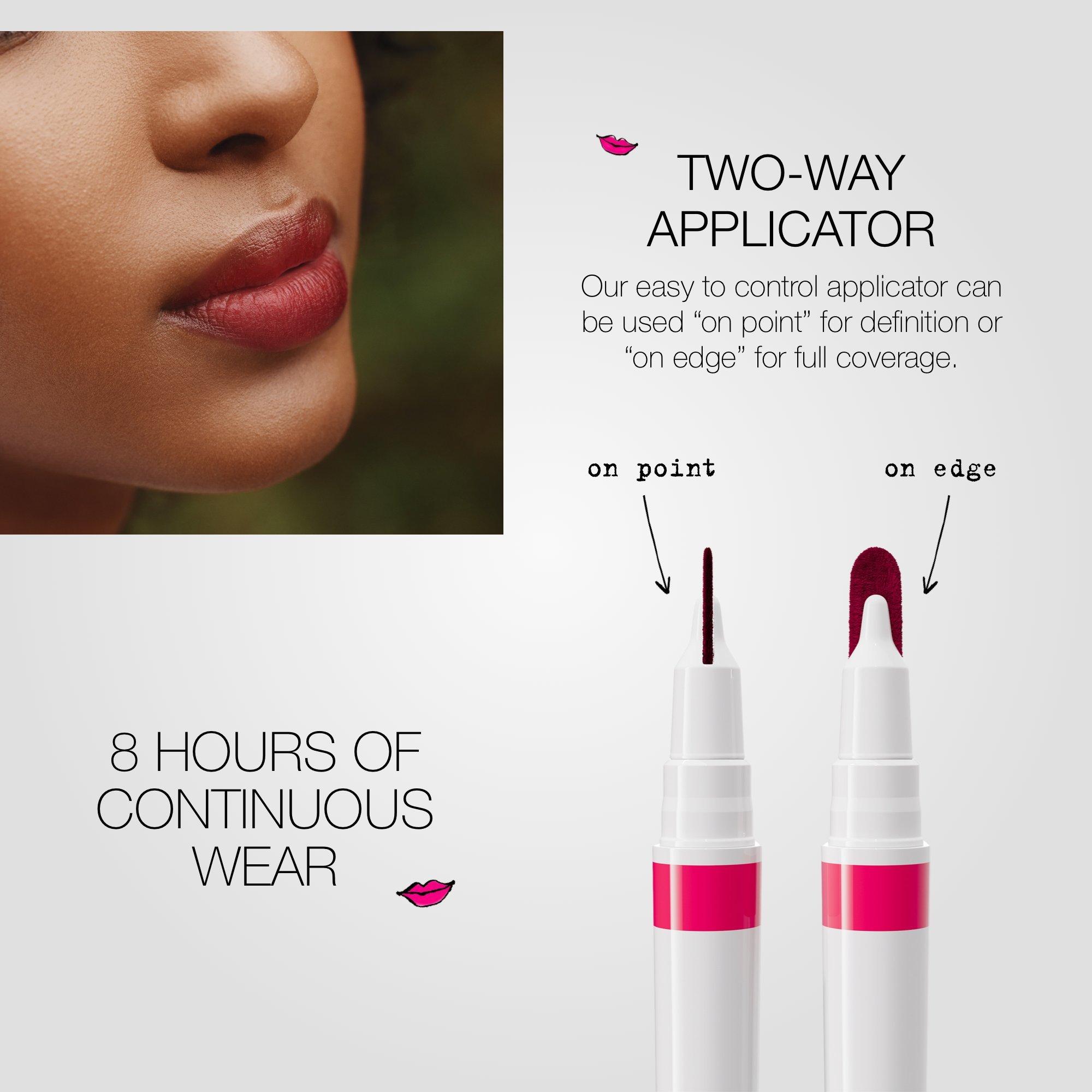 Exfoliate lips prior to use. Using both pressure and application angle, apply "on point" to line, contour, and define your lips, or "on edge" for full coverage and even color distribution. Store tip side down or horizontally for best performance.