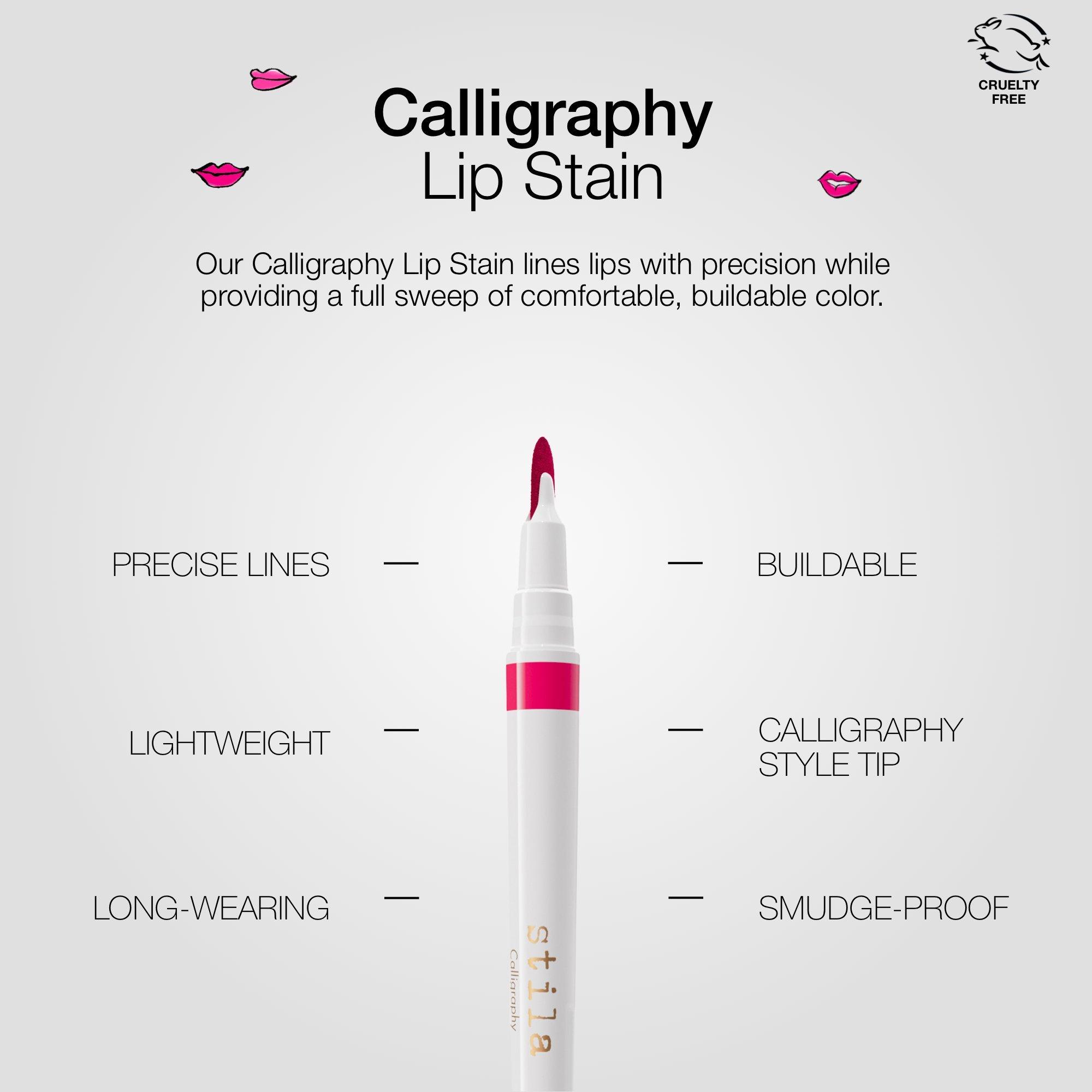 Stila's Calligraphy Lip Stain is a revolutionary, double-duty lip stain that lines lips with precision while providing a full sweep of soft buildable color.
