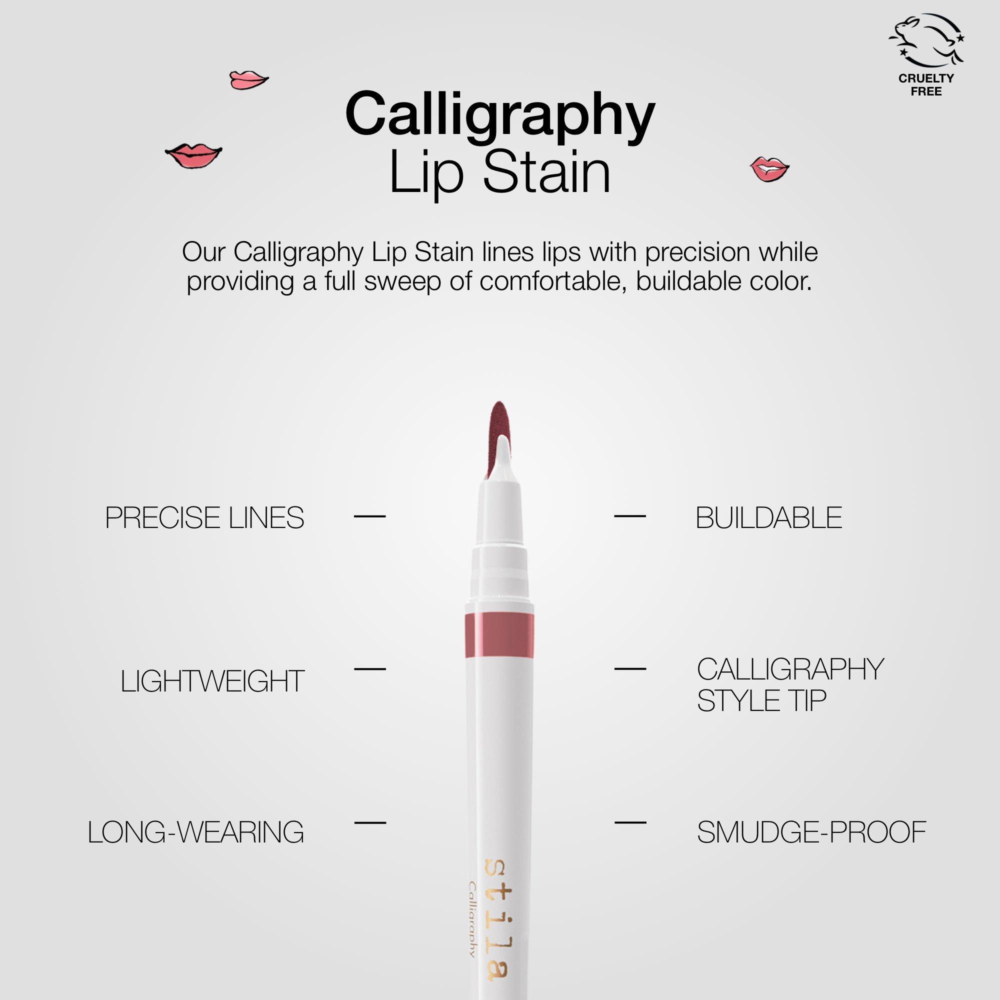 Stila's Calligraphy Lip Stain is a revolutionary, double-duty lip stain that lines lips with precision while providing a full sweep of soft buildable color.